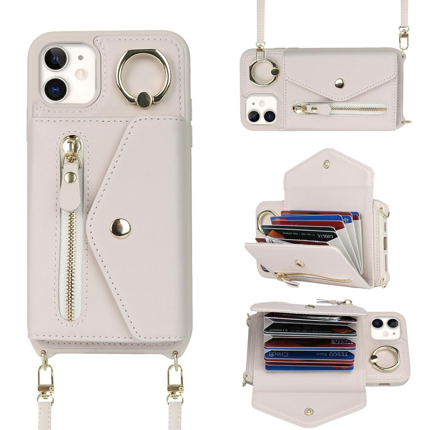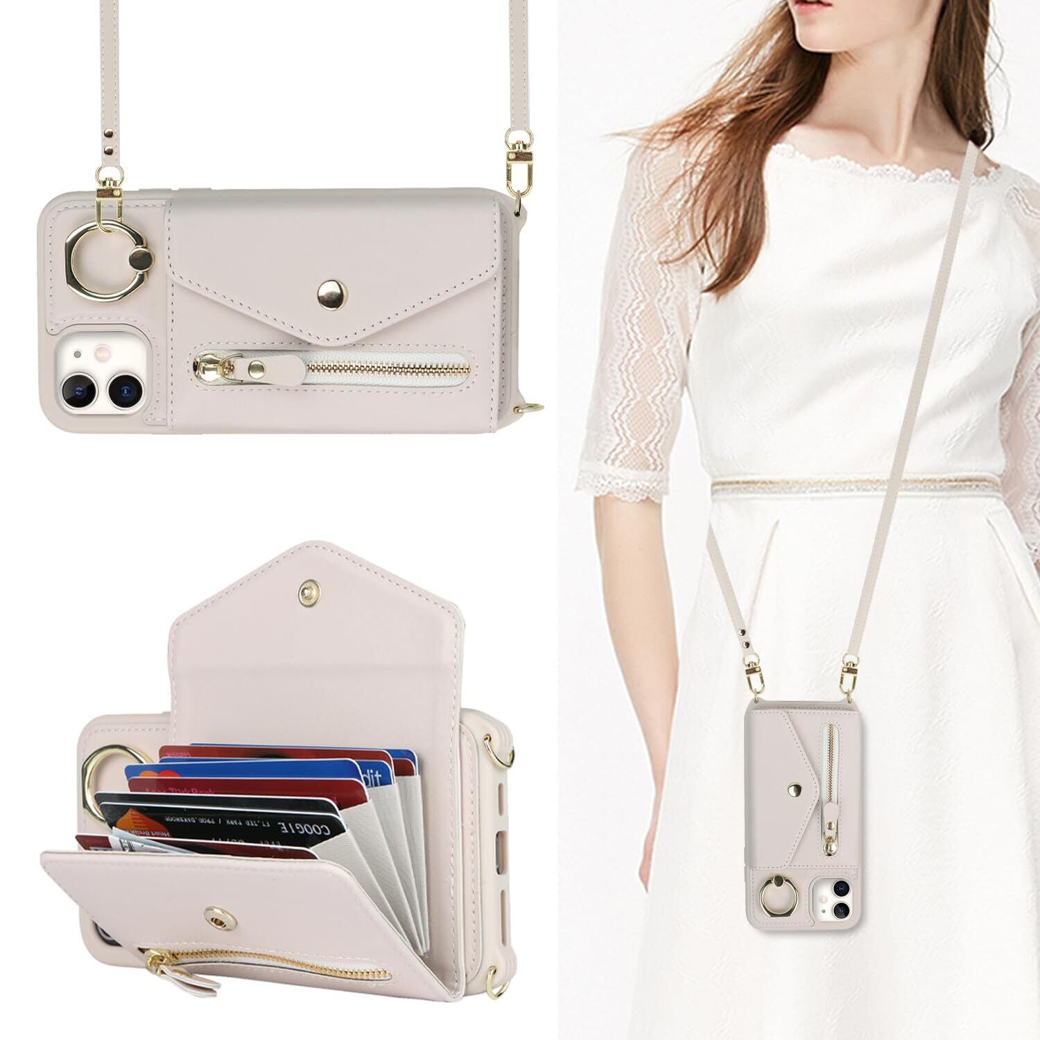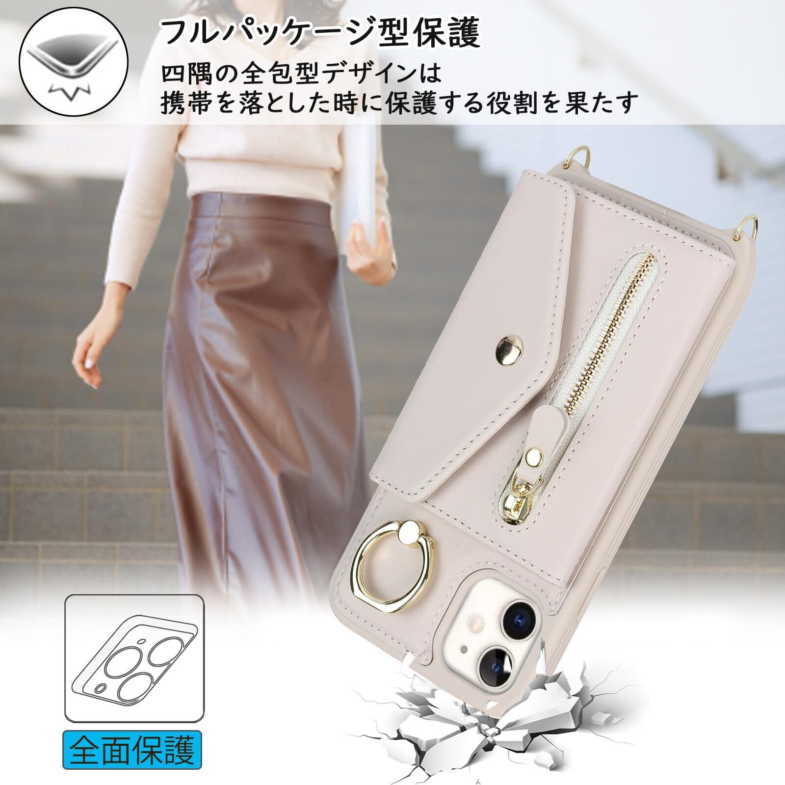 【Hamany】 いphone12 pro ケース スマホ ショルダー iphone 12 ケース 手帳型 ショルダー おしゃれ カード収納 大容量 背面 リング付き スタンド機能 アイホン12プロケース 耐衝撃 耐久性 女性 肩がけ 首掛け 斜め掛け ストラップ付き 長さ調整可能 カバー -アンバー ホワイト