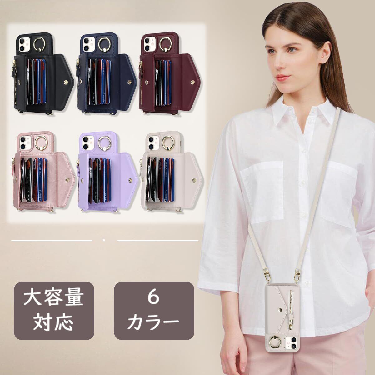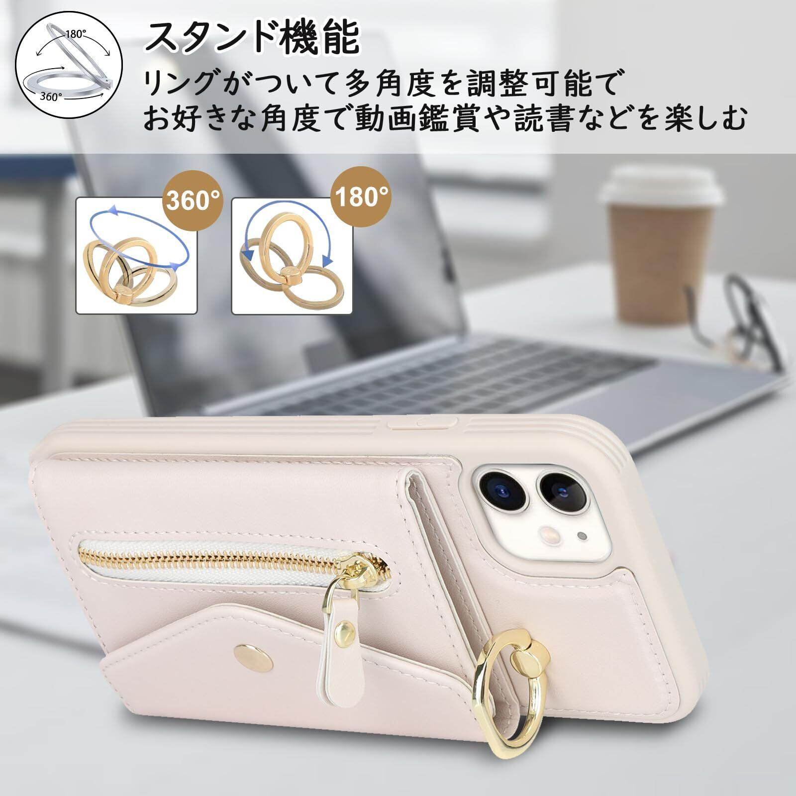 【新春セール】【Hamany】 いphone12 pro ケース スマホ ショルダー iphone 12 ケース 手帳型 ショルダー おしゃれ カード収納 大容量 背面 リング付き スタンド機能 アイホン12プロケース 耐衝撃 耐久性 女性 肩がけ 首掛け 斜め掛け ストラップ付き 長さ調整可能 カバー -アンバー ホワイト
