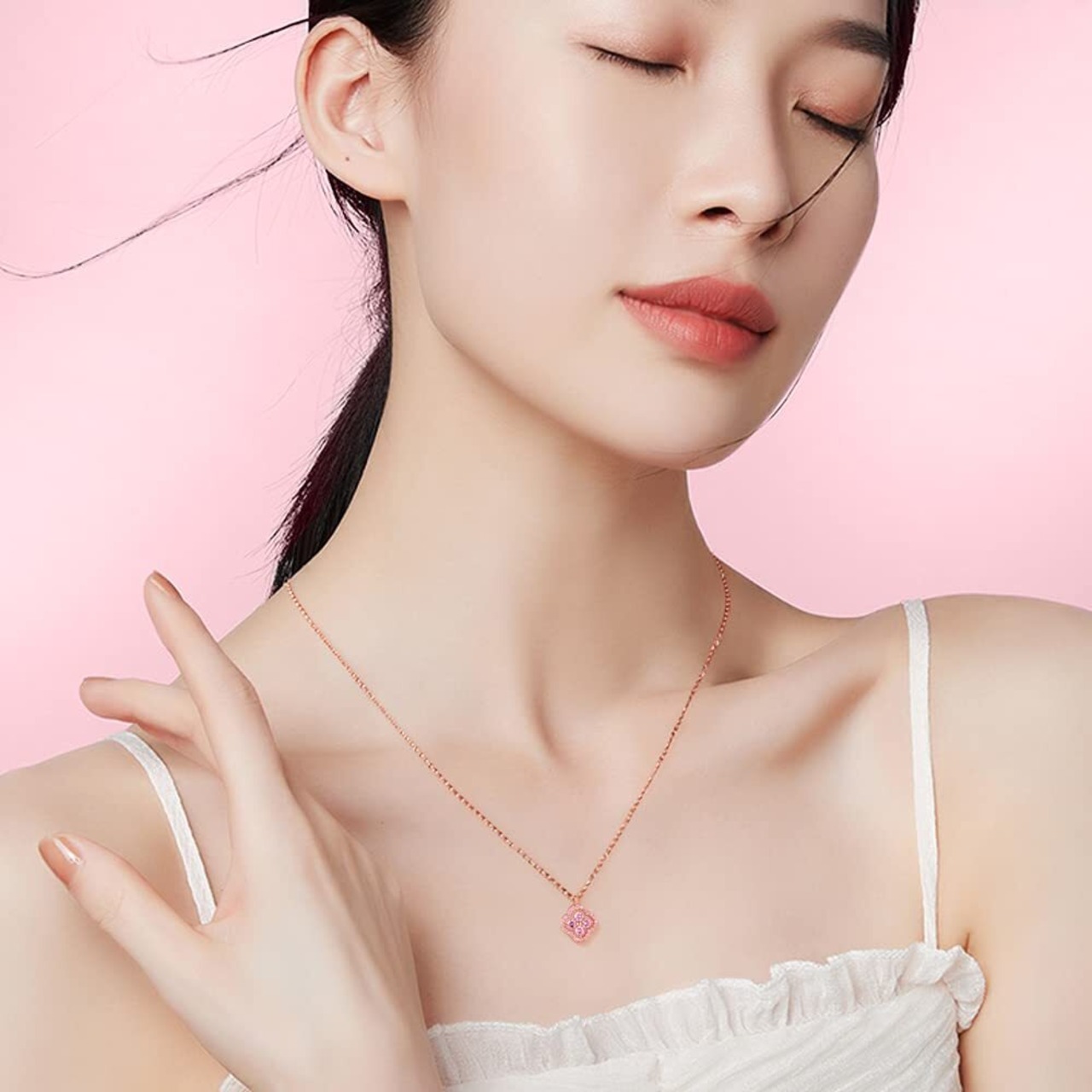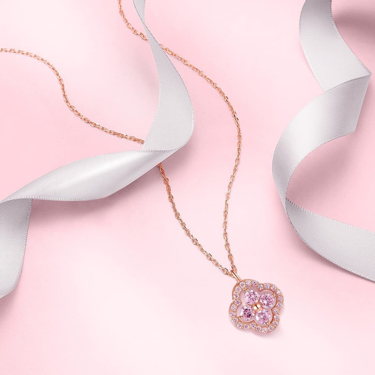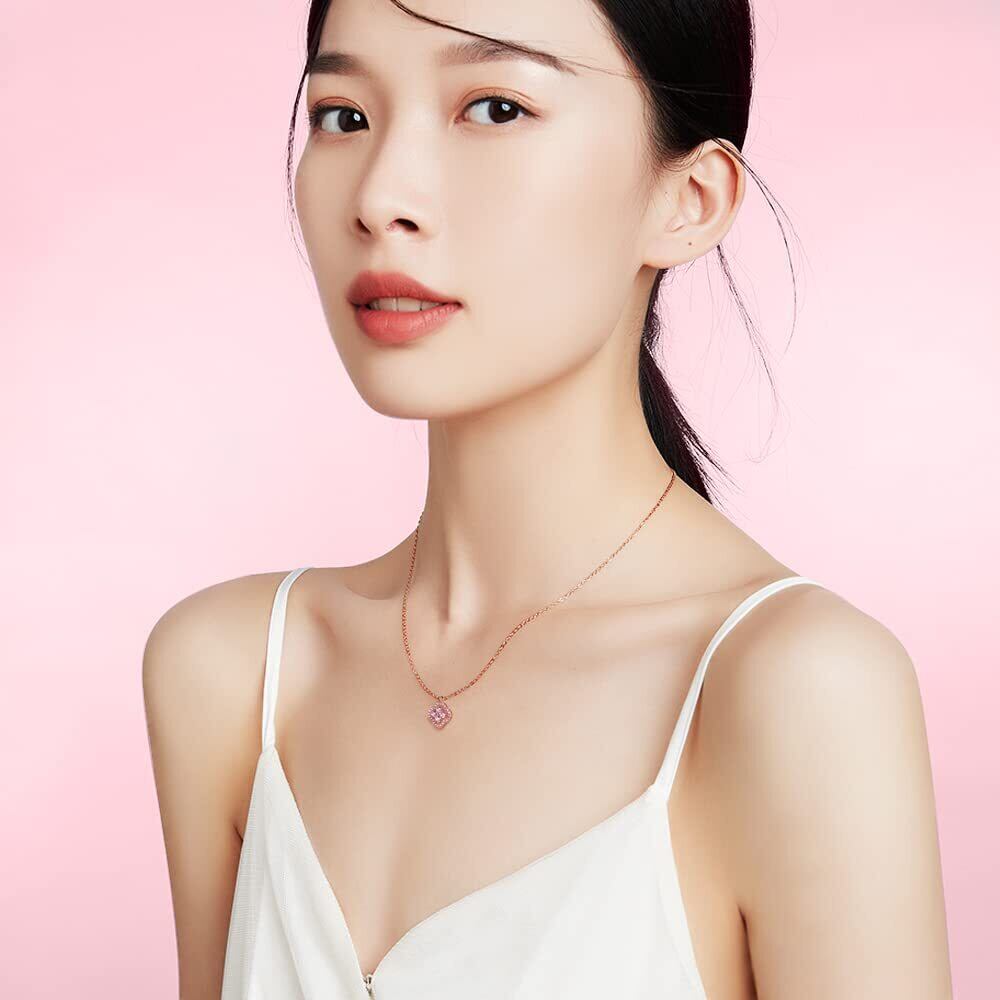 ピンクロマンス:ピンクゴールド アクセサリーで優しいエレガントなイメージ、着けるだけで胸元を華やかに演出してくれるジュエリーです。 このピンクゴールドネックレスを身に着けているすべての女性が無限の魅力を放ちますように