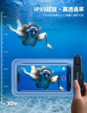【水中撮影・顔認証・通話可能】高透光なので、水気のある場所でもスマホの画面がクリアに見られ、写真撮影・ビデオ鑑賞・Face ID顔認証に対応可能です。音声もクリアため、ケースに入れても通話や音楽鑑賞など通常と同じようなスマホ操作ができます。温泉で音楽や動画を楽しみたい時、潜水中でメール受信を確認したい時など様々な場合に役立ちます。注意水圧の影響で水中撮影の際に、物理的なボタン(ボリュームボタン)を使用してください。温度変化により、防水袋に蒸気が現れるのは正常な現象です。