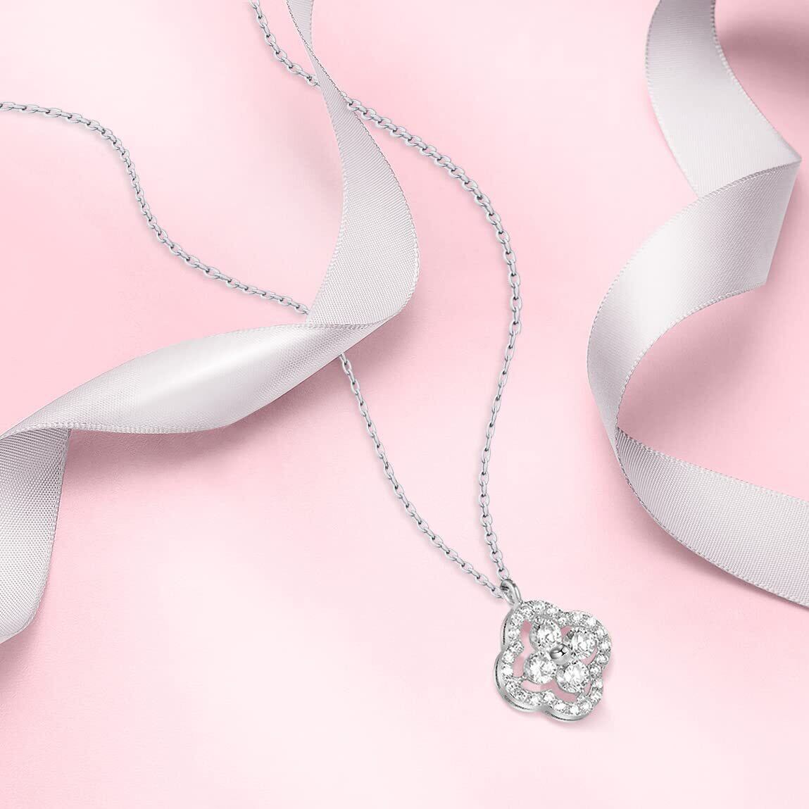 ピュアホワイト:スターリングシルバー ネックレスで優しいエレガントなイメージ、着けるだけで胸元を華やかに演出してくれるジュエリーです。 このアクセサリーを身に着けているすべての女性が無限の魅力を放ちますように
