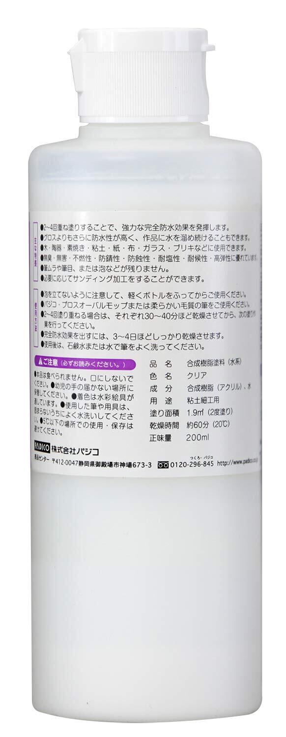 被膜で作品を水から守る水性タイプの強力防水ニスです。
