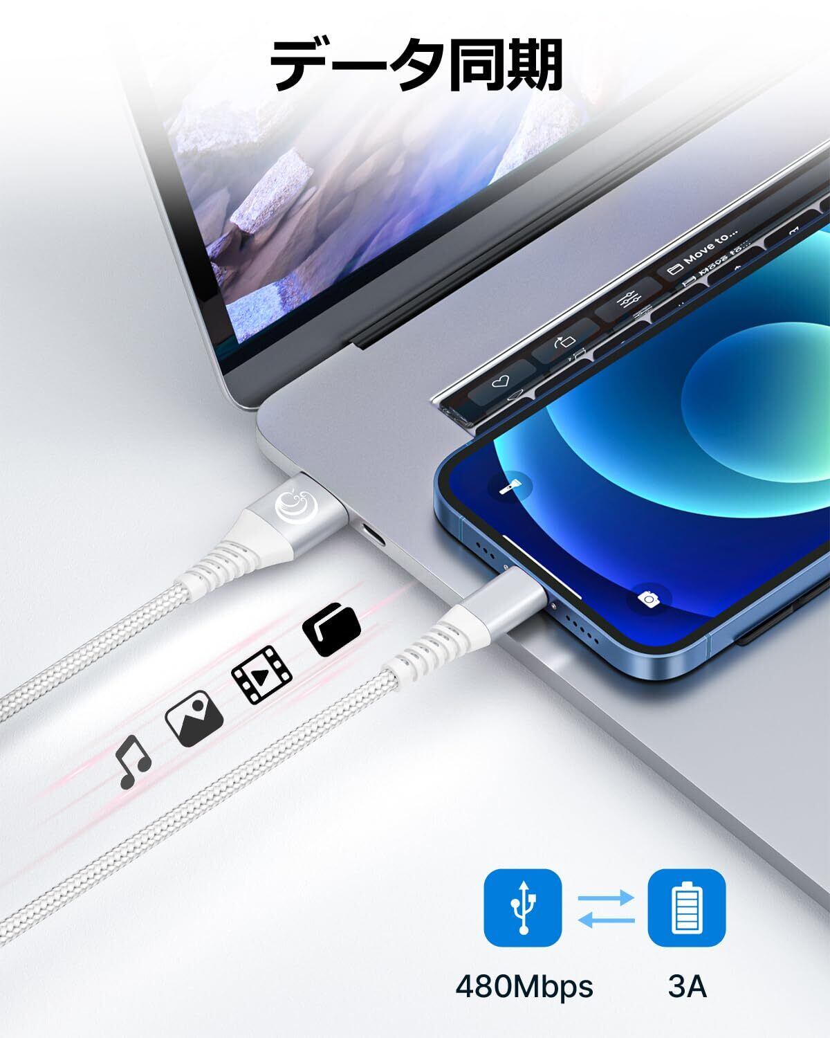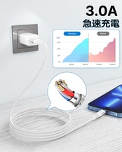 【急速充電】iPhone充電器コードは、高純度の銅製コアが導体に採用されるため、良い導電性を持ているだけでなく、データ損失も大幅に抑えます。急速充電器と組合わせれば、3Aまでの急速充電が可能です。