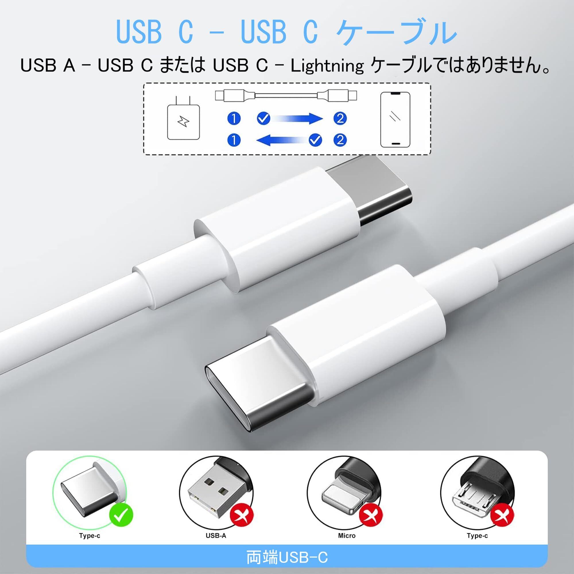 2本セット:️️映像出力は非対応。1本は足りません!2本入りの2メートルUSB Type C to Type C充電ケーブルセット登場!自宅、オフィス、旅行先での充電ニーズに簡単に対応します。スペアパーツはいつでも利用できるので、充電について心配する必要はありません。(️ご注意:本品はUSB Type-C & USB Type-Cケーブルであり、USB Type-A & USB Type-Cケーブルではありません。ご購入前にケーブルの接続端子をご確認くださいませ。)