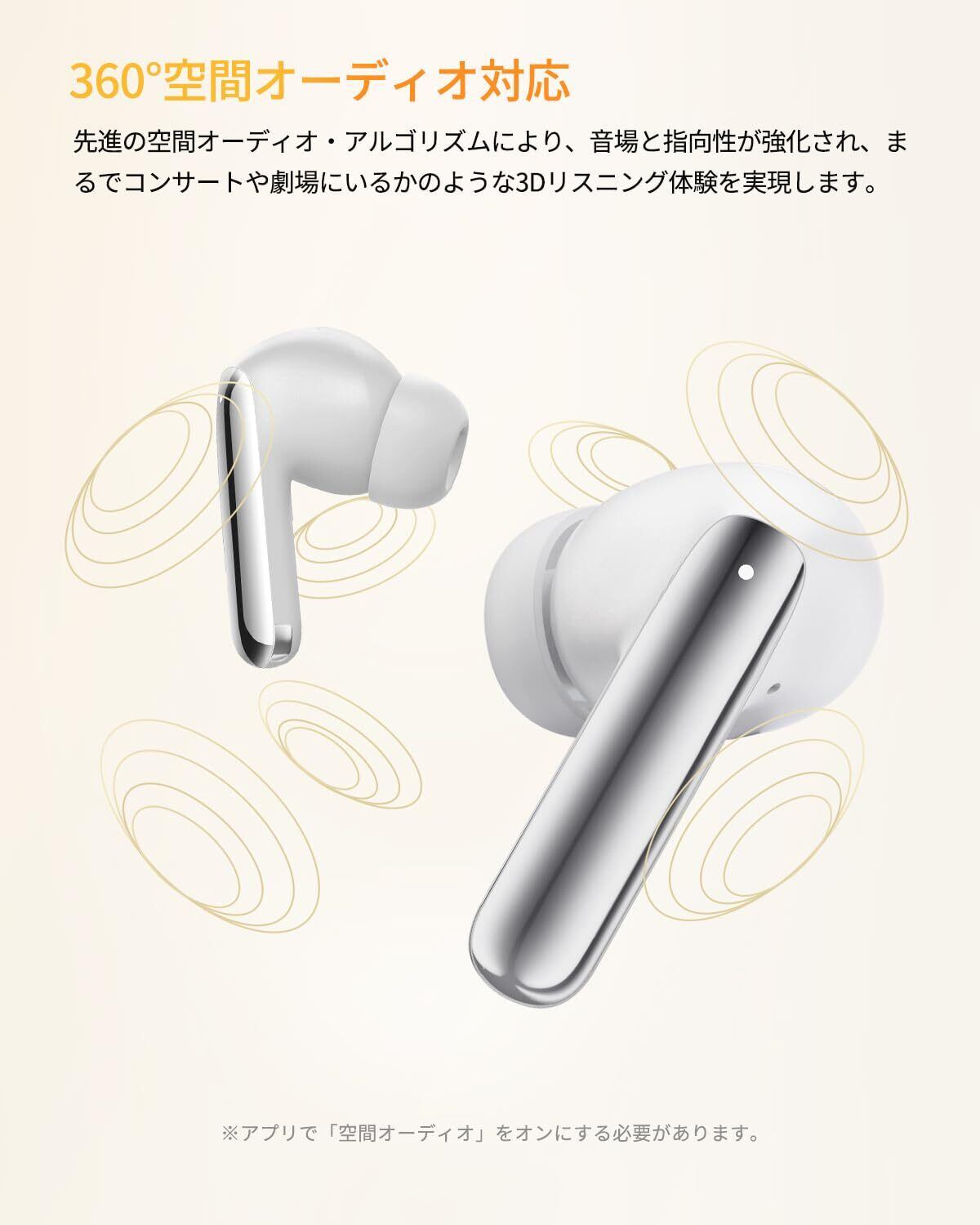 【未体験レベルの音質】MeloBuds Proワイヤレスイヤフォンは高音質ゴーデックLDACに対応し、従来のBluetoothコーデック技術であるSBCと比較し、最大約3倍の情報量を送信することが可能なため、ワイヤレス接続でも原音に近いクリアな音楽を再現。また、日本オーディオ協会 (JAS)からハイレゾオーディオ&ハイレゾワイヤレス認証も取得しました。QCY独自の空間オーディオアルゴリズムと、弾力性のある12mm大口径ダイナミックドライバーにより、空間全体を包み込むような立体音響を実現しました。まるでコンサート会場でVIP席に座ったかのようにリスニング体験をお楽しめます。