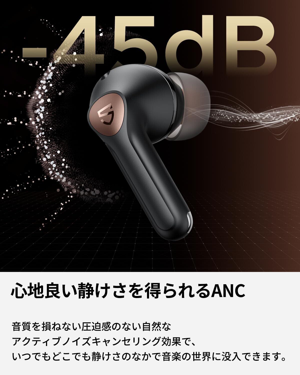 【人気商品】【VGP 2024コスパ大賞&金賞】 SOUNDPEATS Air4 Pro ワイヤレスイヤホン 45dB ノイズキャンセリング ロスレス音質 Bluetooth 5.3 Snapdragon Sound/aptX Adaptive Lossless マルチポイント aptX Voice QCC3071 装着検出機能 外音取り込みモード 低遅延 専用アプリ 防水 サウンドピーツ (ブラック) | nico3588