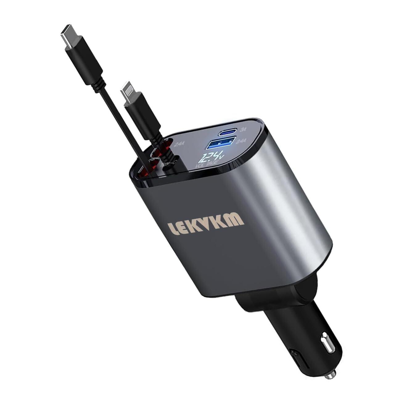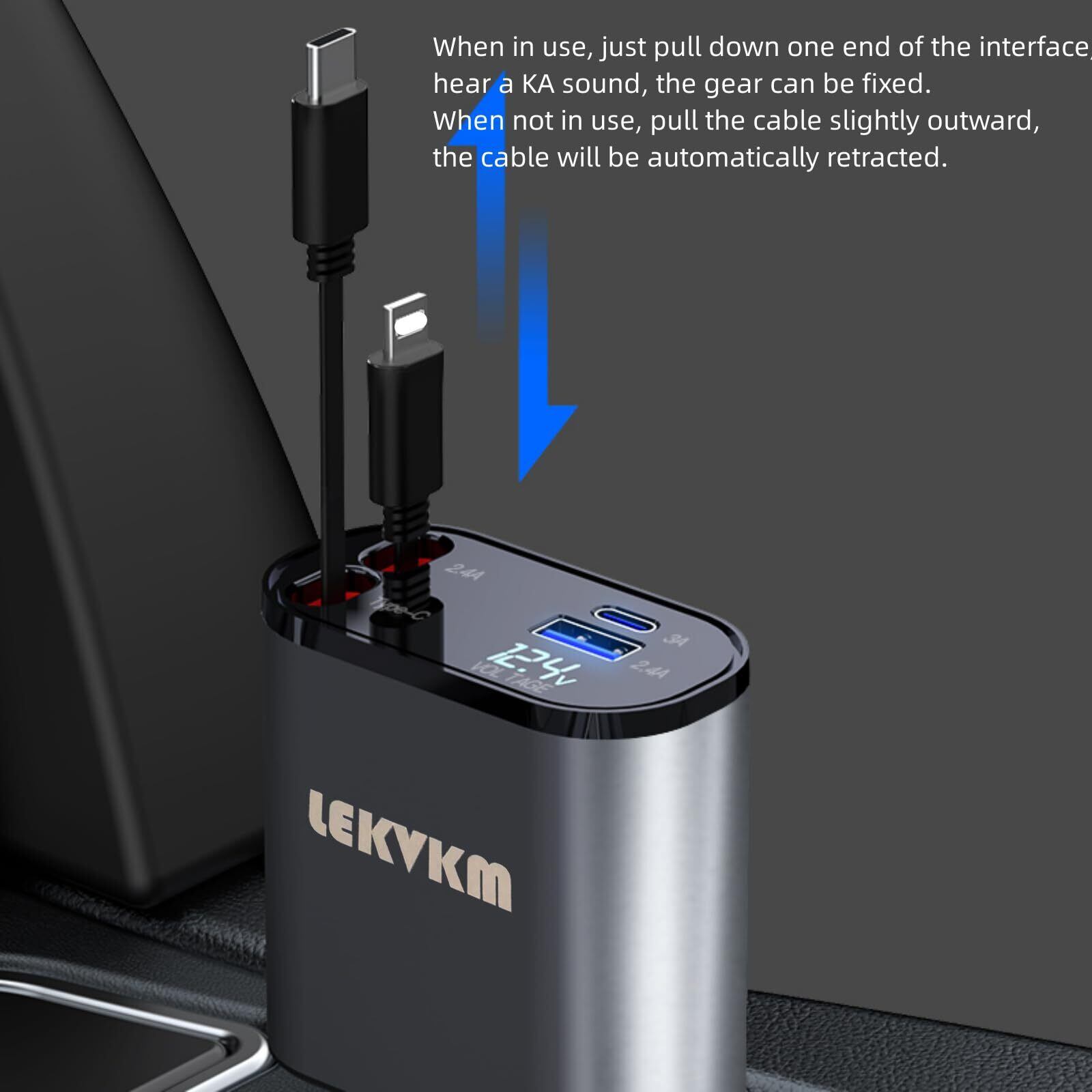 【新着商品】車 充電器 シガーソケットusb巻き取り式カーチャージャーLEKVKM 高速4ポートアダプター急速充電カーシガーライタープラグ、iPhoneおよびType-Cポート、iPhone15、サムスン、ファーウェイ用…