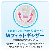 ●すきまモレ 足回りふわぴたWギャザー 動き回っても、足を広げて座っても、ズレずにフィット!