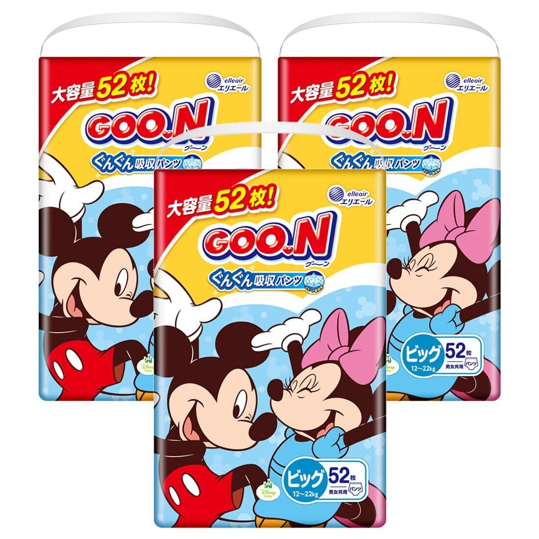 【パンツ BIGサイズ】グーン ぐんぐん吸収パンツ (まっさらさら通気) (12~22kg) 156枚(52枚×3) 男女共用 [ケース販売] 【Amazon.co.jp限定】 <ディズニーデザイン>