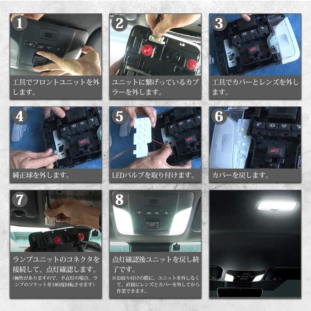 取付簡単:専用設計された製品なので、純正のルームランプと交換するだけの簡単な取り付けです。(点灯しない場合:①T10ソケットの針金を「八」字のように、少し外側に広がる、②+−の極性がございますので,プラスマイナス入れ替えをお試しください)