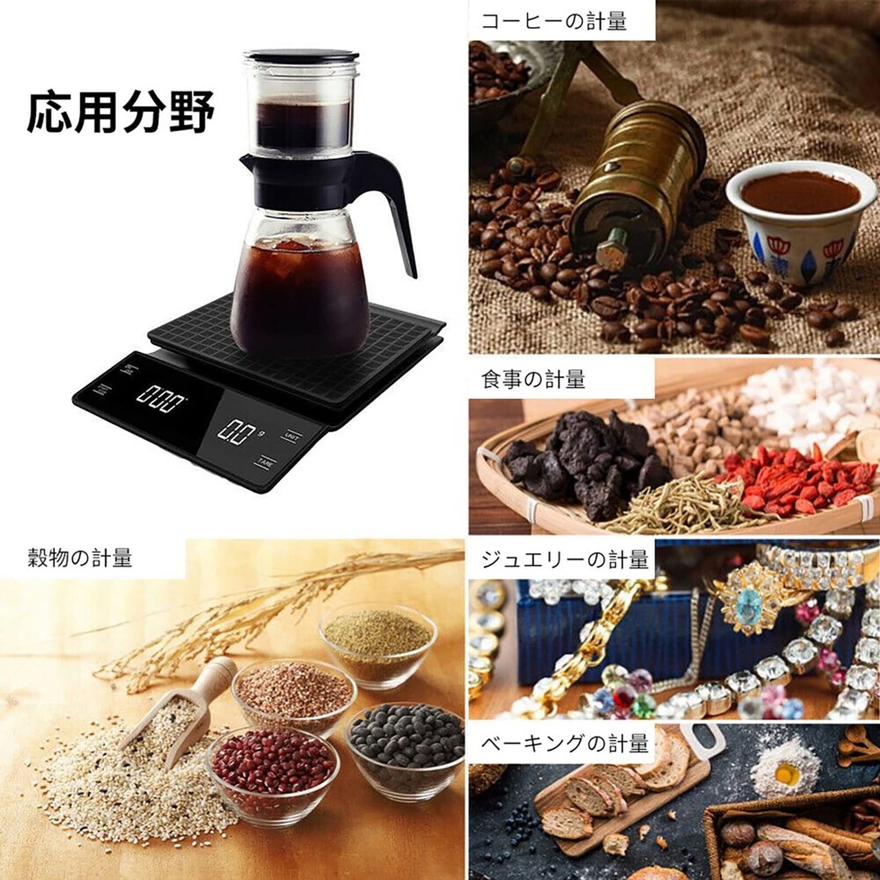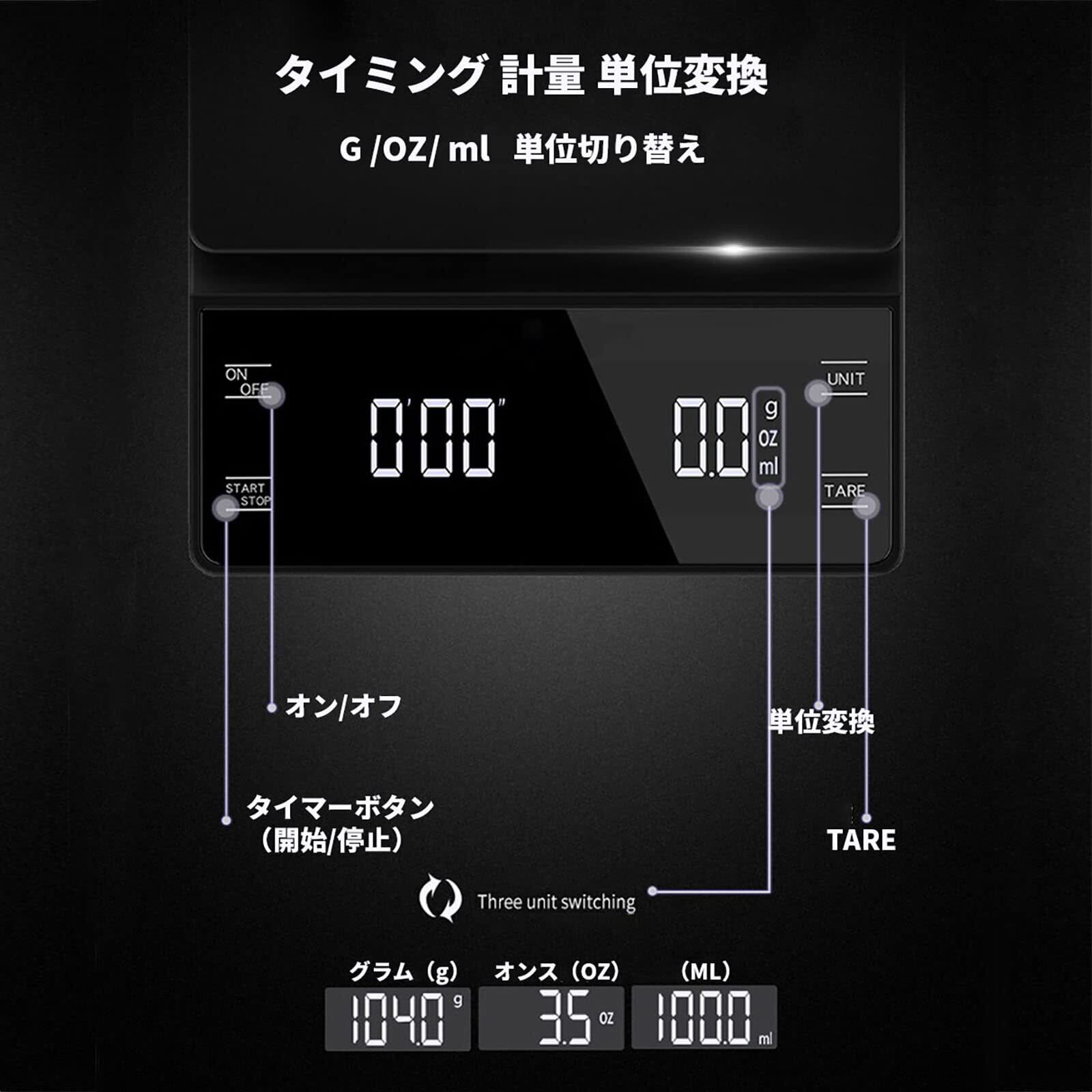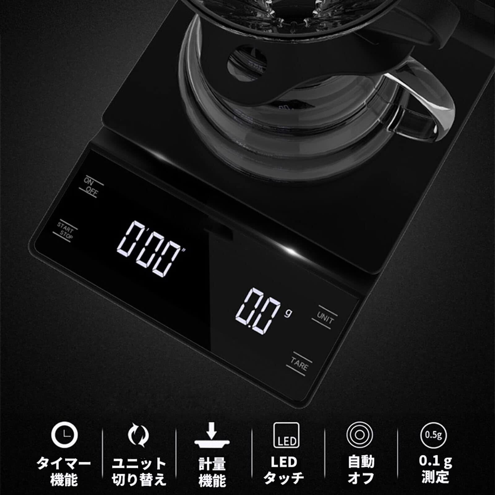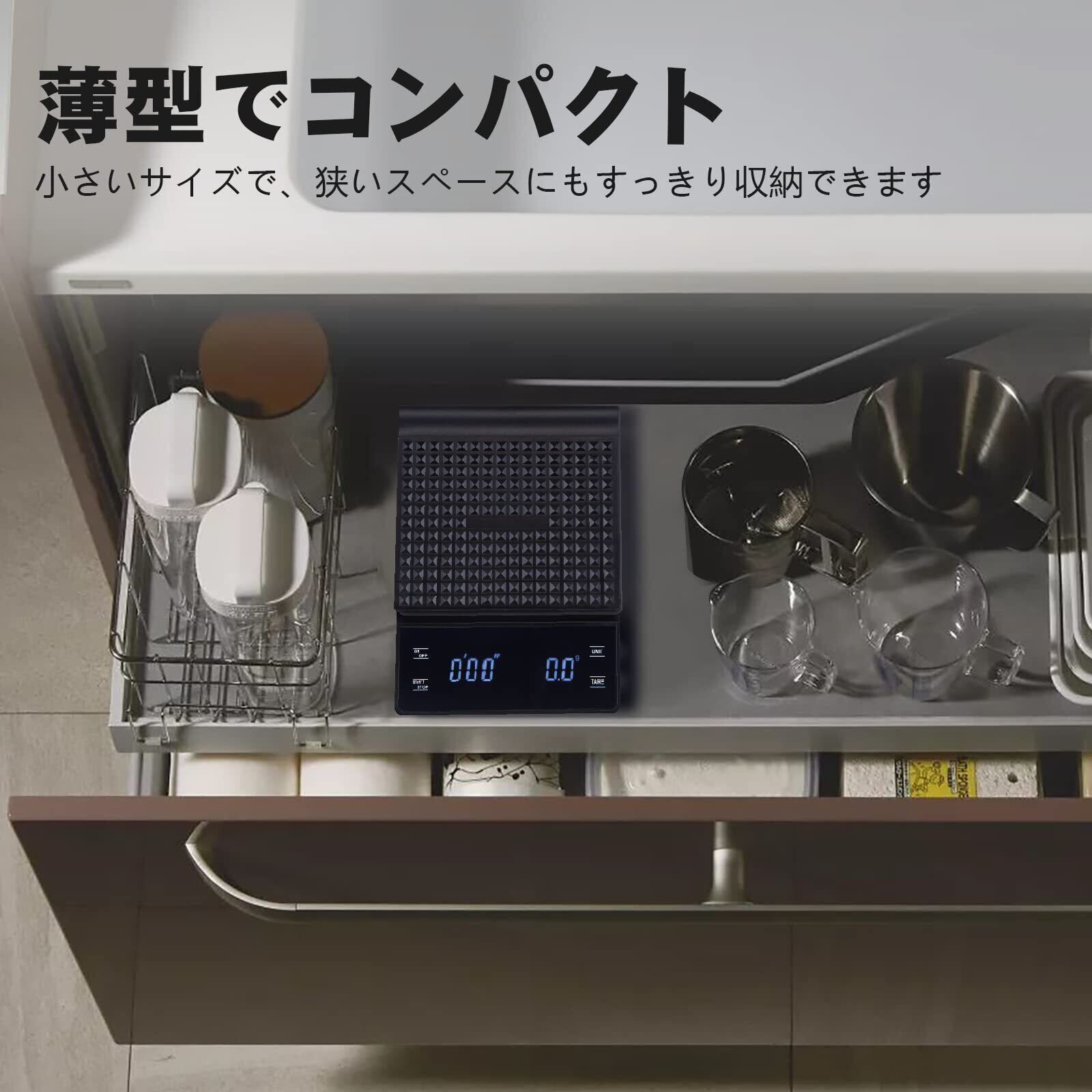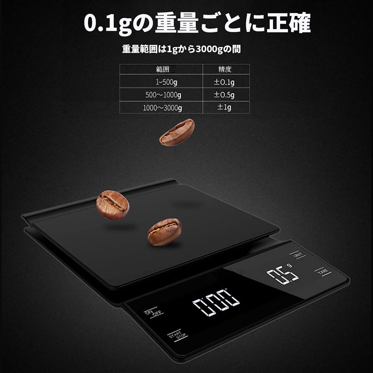 【数量限定】Litake キッチンスケール コーヒースケール デジタルスケール 0.1g単位 3kg タイマー機能付き はかり 計量器 お菓子作り パン作り 防水 日本語説明書付き (ブラック)