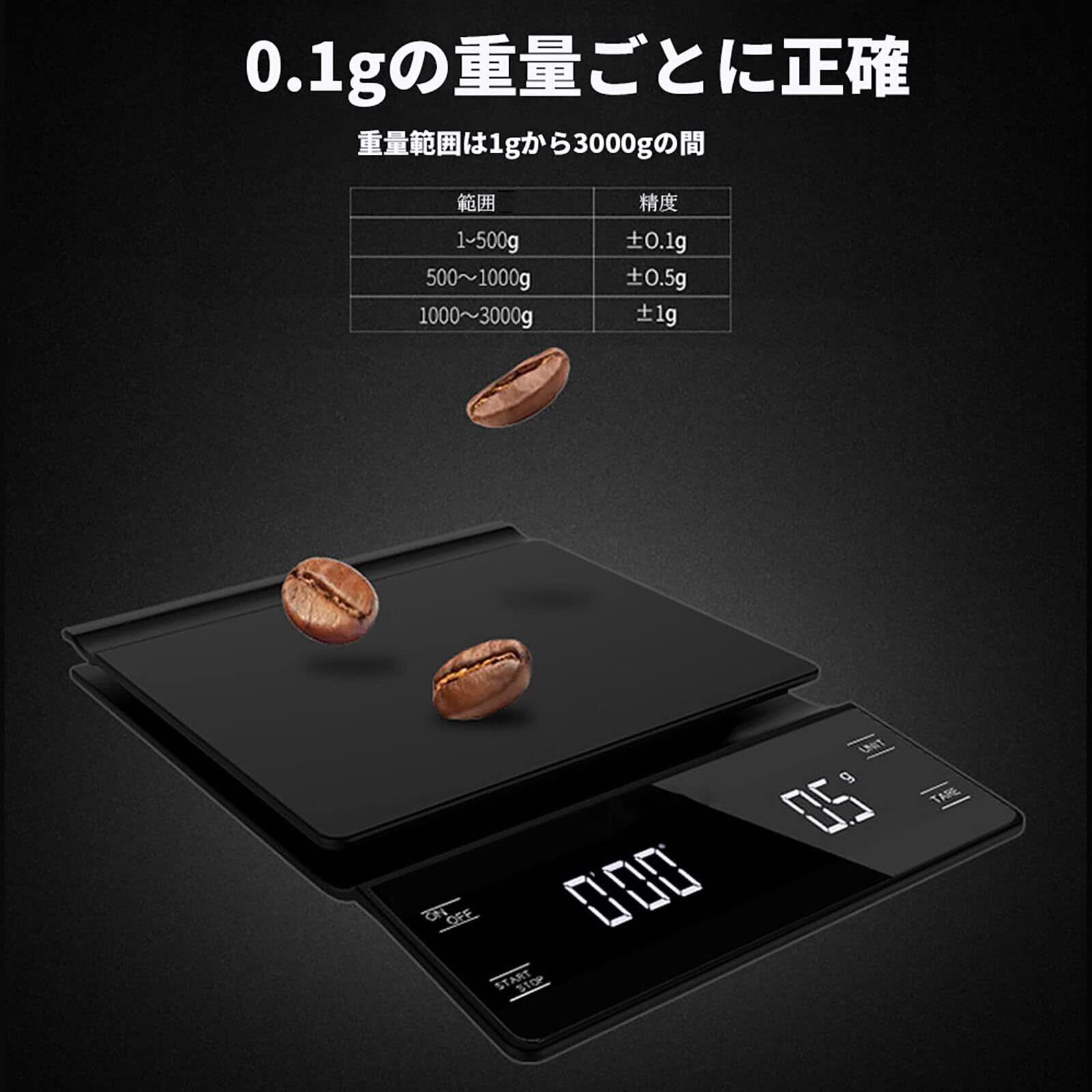 Litake キッチンスケール コーヒースケール デジタルスケール 0.1g単位 3kg タイマー機能付き はかり 計量器 お菓子作り パン作り 防水 日本語説明書付き (ブラック)