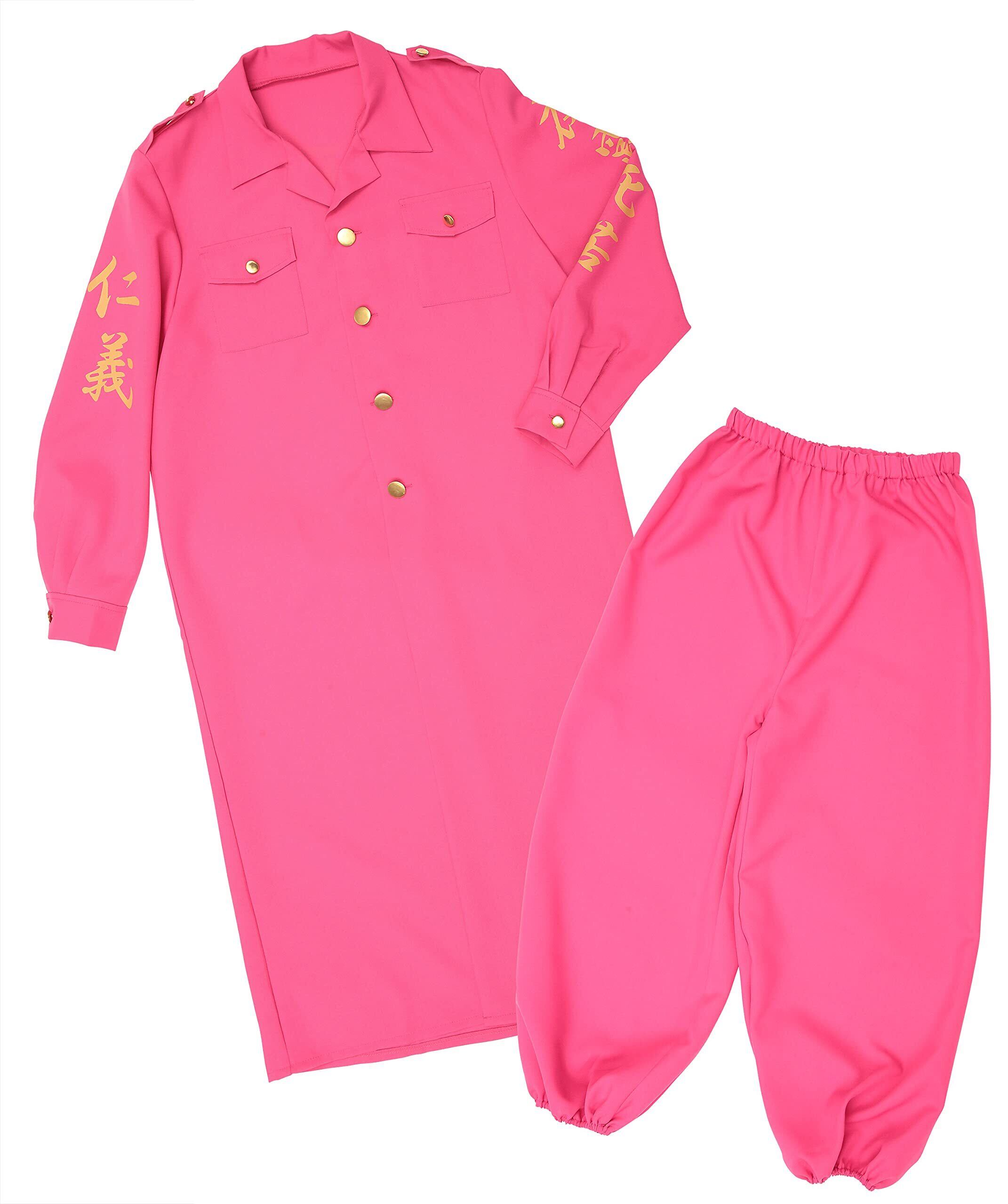 両袖、背中に文字プリントが入った鮮やかなピンクの特攻服。