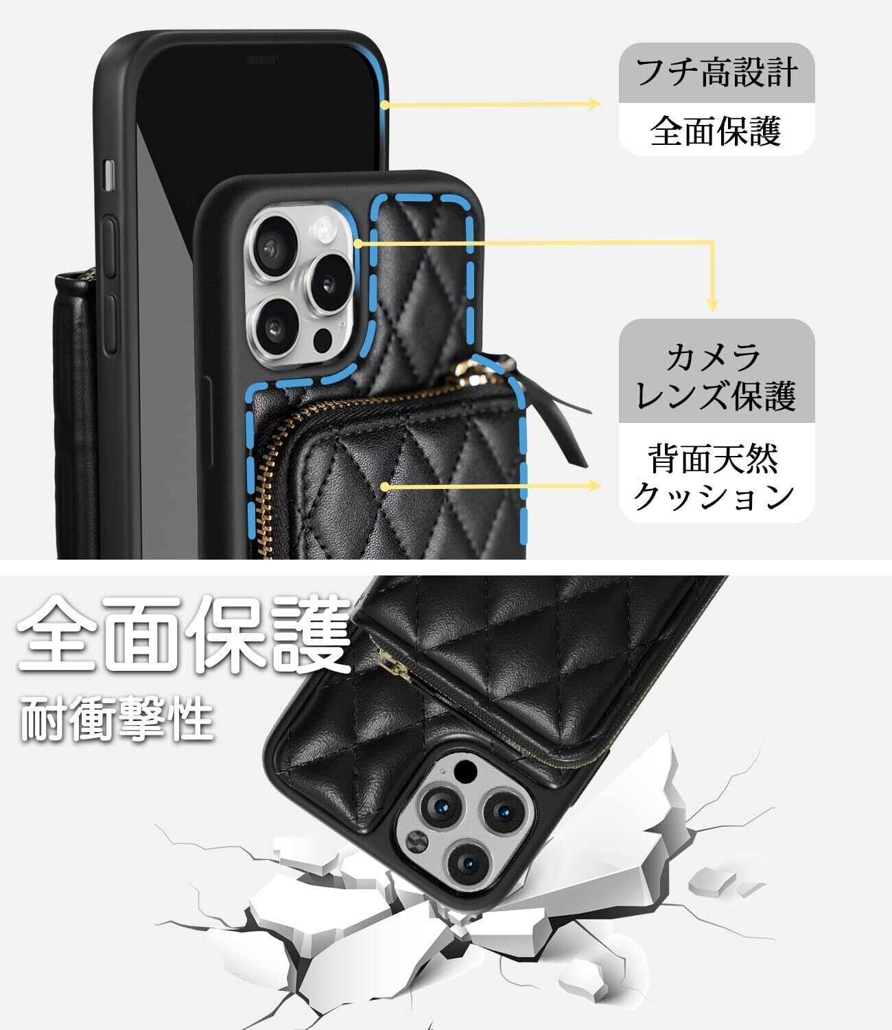 【在庫処分】Liisea いphone14 ケース ショルダー キルティング iphone14 ケース 財布 付き ストラップ 小銭入れ ファスナー いphone14 ケース ショルダー 落下防止 カード 収納 スマホケース iphone 14 アイフォン あいふぉん14 いphone14 ケース アイホン14ケース ショルダー 携帯ケース スタンド おしゃれ 可愛い 肩掛け 斜めかけ チェック柄 ブラック