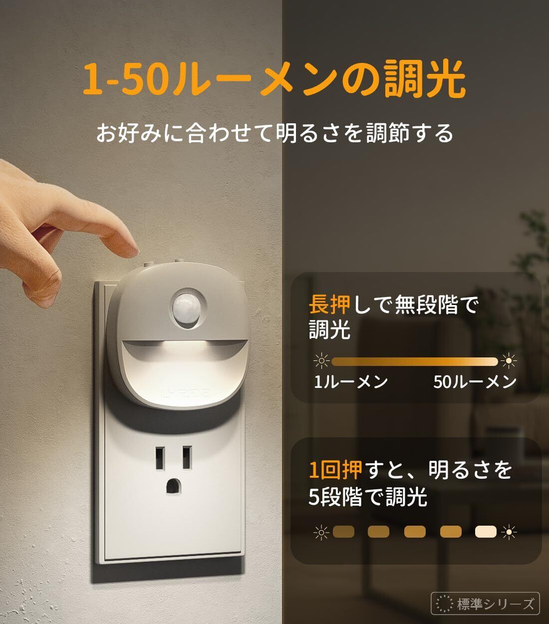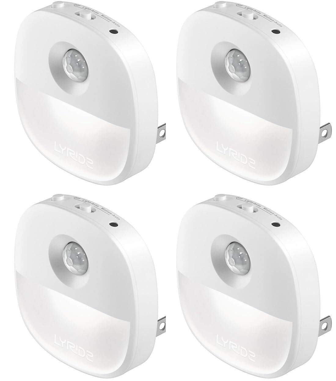 Lyridz センサーライト 室内 足元灯 コンセント 常夜灯 無段階調光 フットライト 人感センサーと明暗センサーが両立 LED 足元ライト 実用3モード 昼光色 省エネ 廊下 寝室 玄関 階段 【4個セット·PSE取得済·日本語取説】