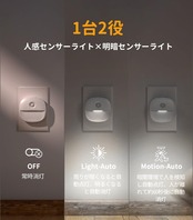 【実用性が高いセンサーライト】お客様のご要望に応えてWセンサー式のLEDセンサーライトを登場する!明暗・人感センサー、明暗センサー、常消灯の3モードがあります。①motion-autoモード:周囲が暗い環境で、人が来ると人感センサーが感知して自動点灯。離れて60秒後に自動消灯。感知範囲は120°、約4メートル以内です。②light-autoモード:周囲が暗くなると自動的に点灯し、明るくなると自動消灯します。持続点灯する常夜灯として使え、消し忘れがなくて便利です。③OFFモード:旅行でしばらく必要がない時に便利なモード。