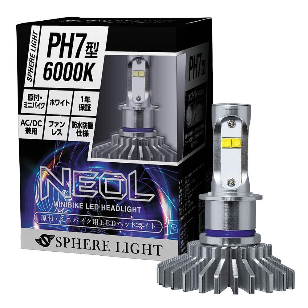 スフィアライト 原付 ミニバイク NEOL PH7型 LED ヘッドライト 6000K ホワイト 12V 直流 交流 兼用 車検対応 ファンレス バルブ 耐震20G 二輪 ネオル SPHERELIGHT SBNR060