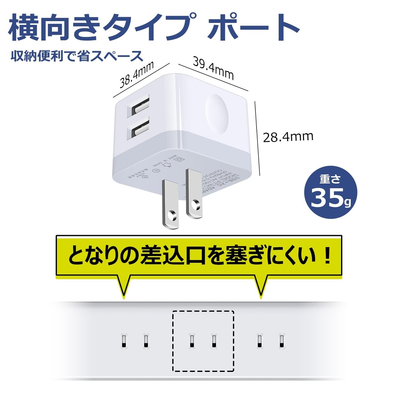 特徴 PSE済、usb 2ポート、android 充電器 、usb電源アダプタ