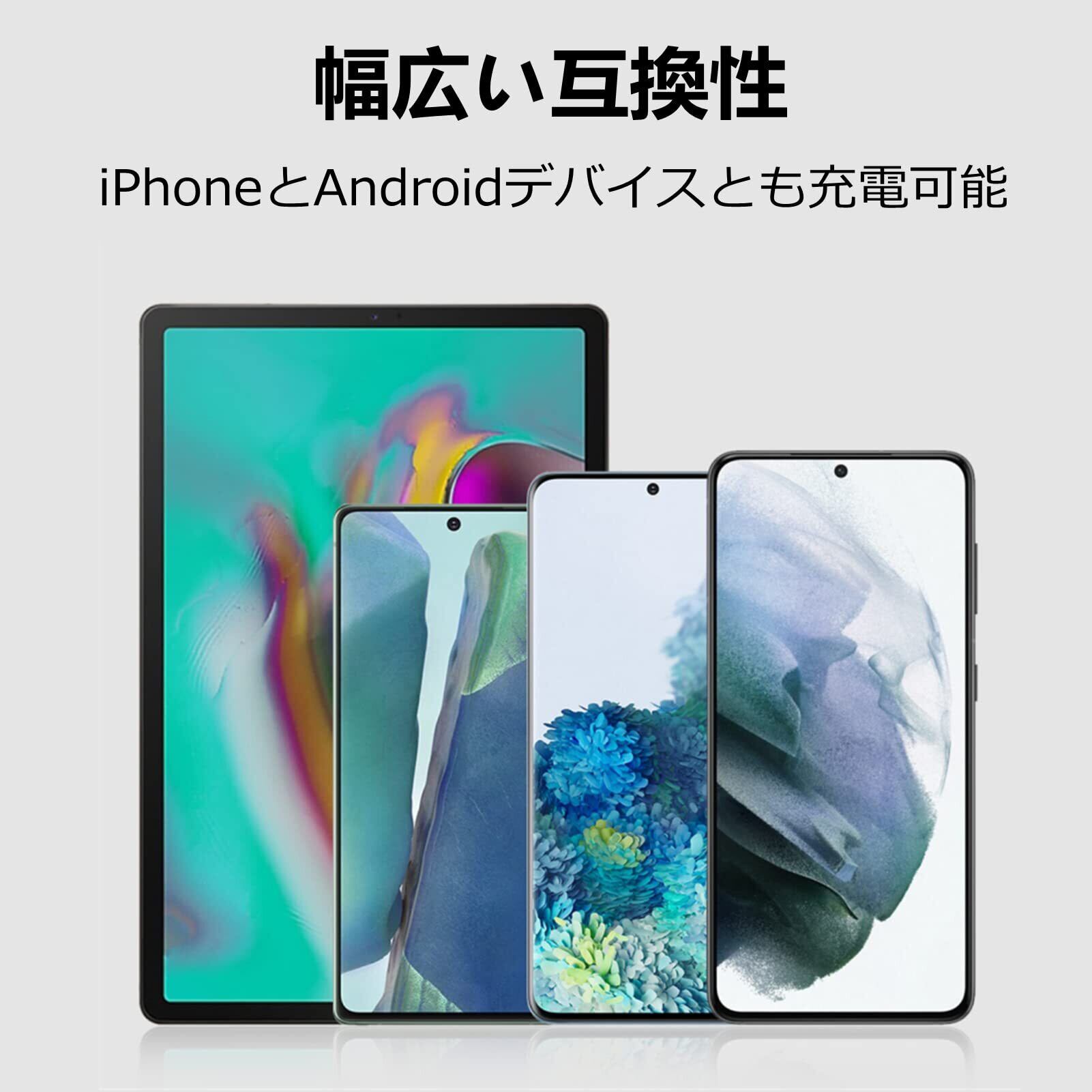【幅広い対応機種】iPhone13、ipadなどアイフォンのデバイスに対応可能だけではなく、Samsung Galaxy、Xperia、Aquos Sense、Google Pixel、モバイルバッテリー、電子書類、ゲーム機器など、様々なUSB機器をフルスピードで充電可能です。