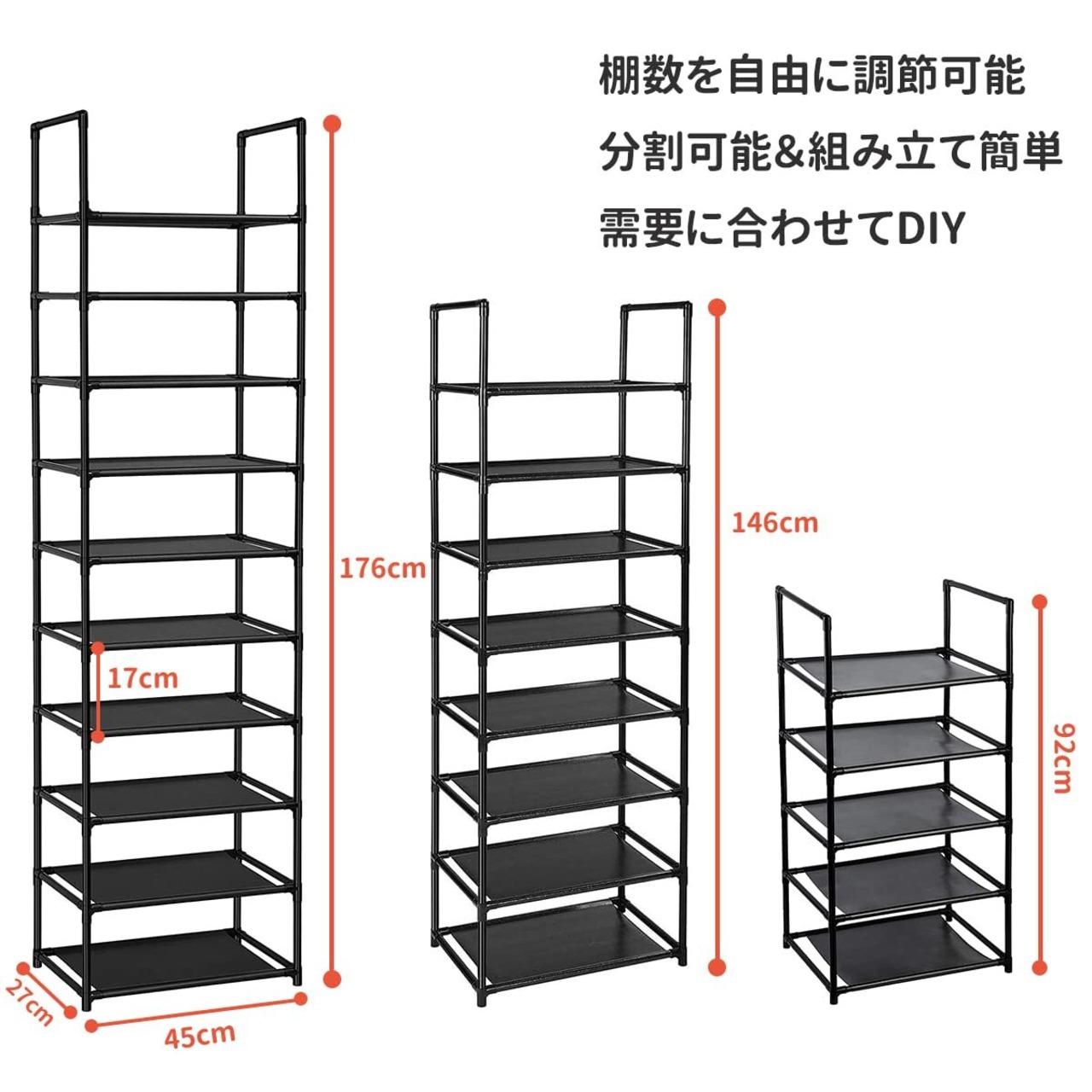 【在庫処分】シューズラック 10段 靴収納 靴棚 18-20足 下駄箱 省スペース シューズボックス スリム 玄関に靴を効率収納 靴入れ 組み立て式 幅約45×奥行28×高さ176cm(ブラック 10段)