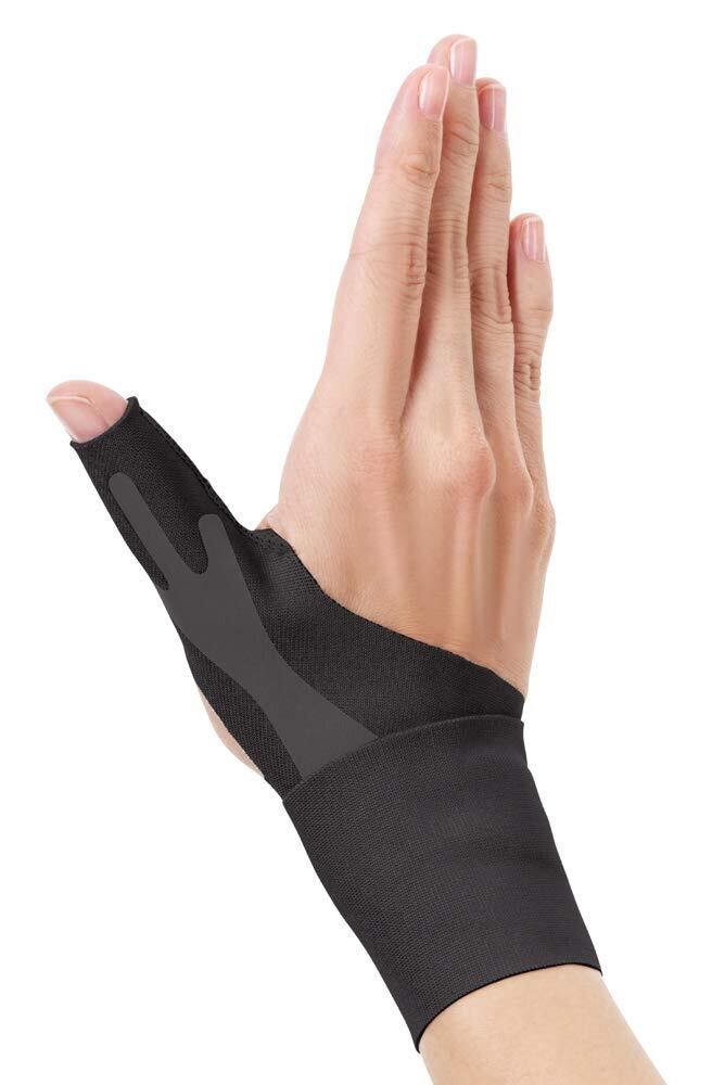【負担のかかりやすい場所を固定】母指のつけ根と手首の2ヵ所を固定することで動きを抑制します。仕事、趣味、家事をしっかりサポートします。