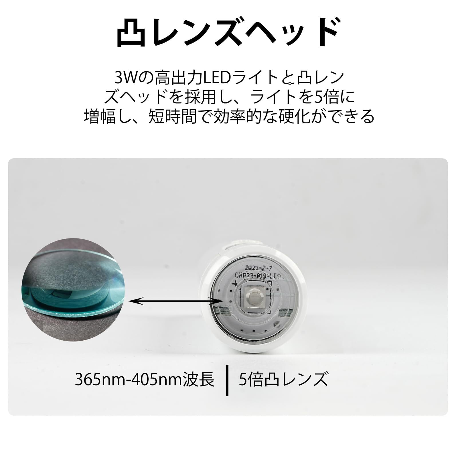 【硬化が簡単】このネイルライトが、3Wの高出力LEDライトと凸レンズヘッドを採用し、ライトを5倍に増幅し、短時間で効率的な硬化ができます。波長365nm-405nmのLEDライトが付属し、LEDとUVジェルの両方に対応しています。これにより、ジェルネイルの硬化が簡単で手間がかからなくなります。