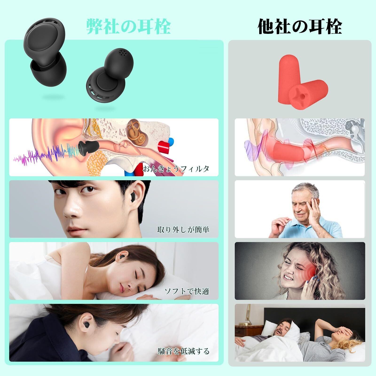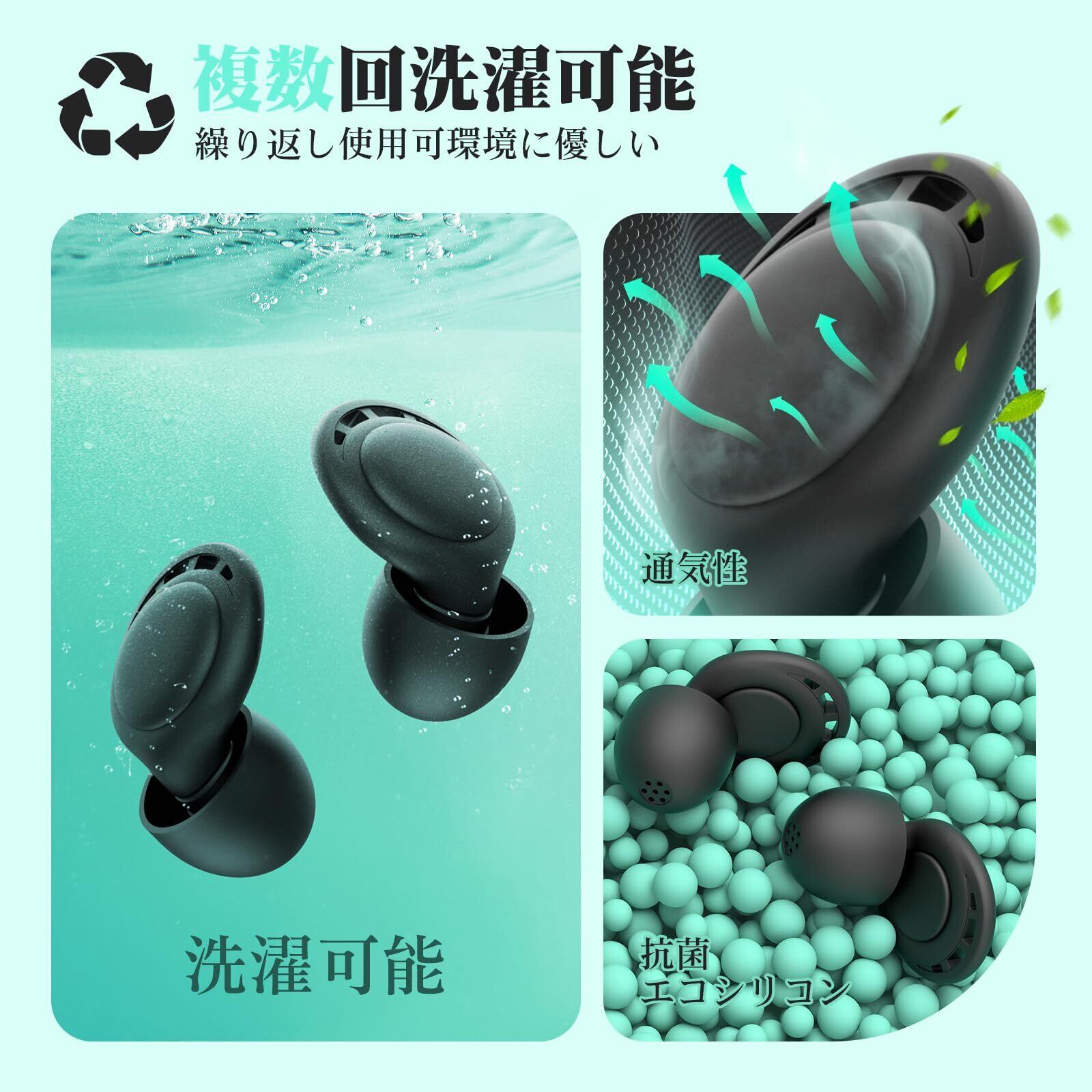 「丸ごと洗えて衛生的」睡眠用耳栓の左右耳(L/R)を区別して、耳をそっと引き上げ、耳栓を外耳道に入れるだけで着やすいです。柔らかいシリコーンから作られており、肌に優しく、抗菌性で、水洗い可能で、繰り返し利用できます。