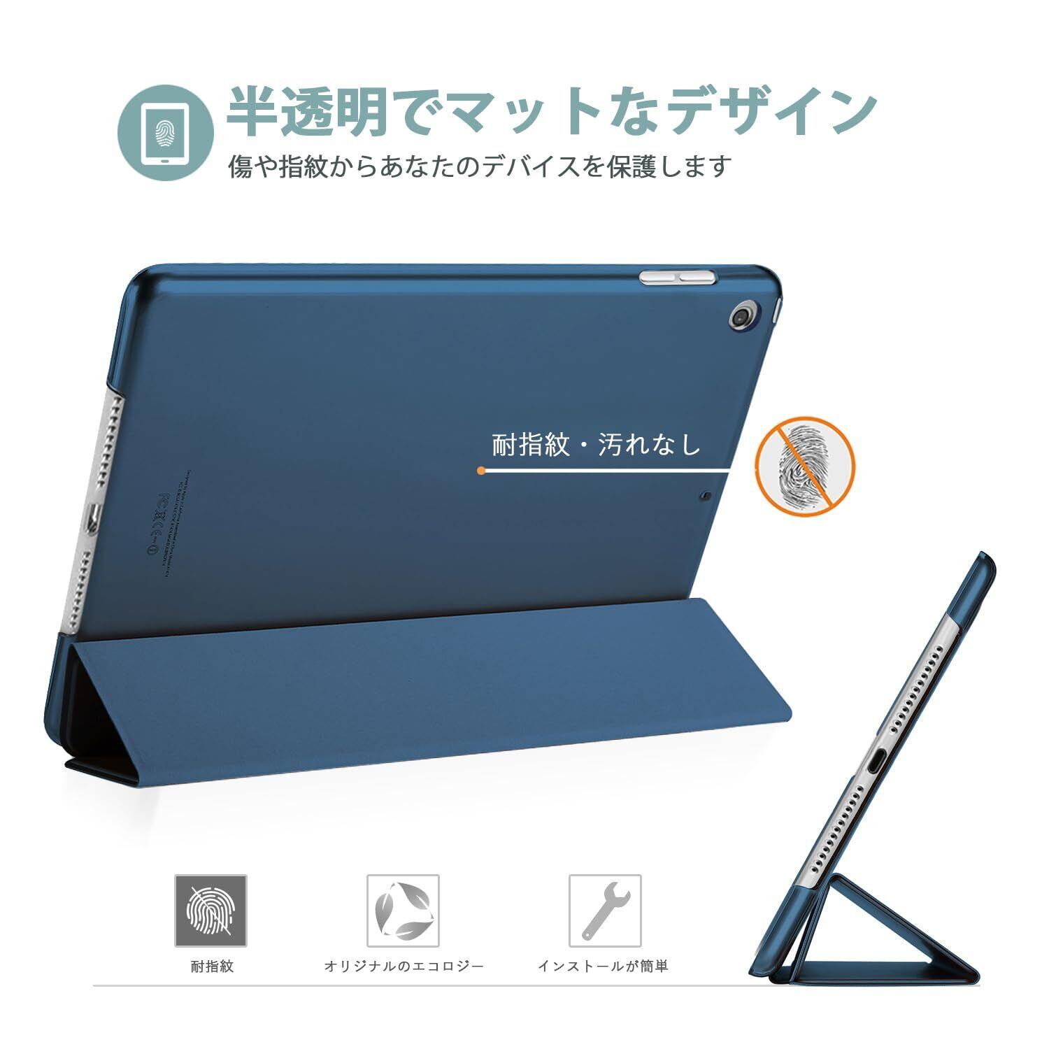 ProCase iPad Mini 5 ケース オートスリープ/ウェイク機能 三つ折りスタンド スマート 超スリム フォリオ保護ケース 半透明フロスト バックカバー 対応端末:Apple iPad Mini 第5世代 2019発売 7.9" (A2133 A2124 A2126)–ネービー