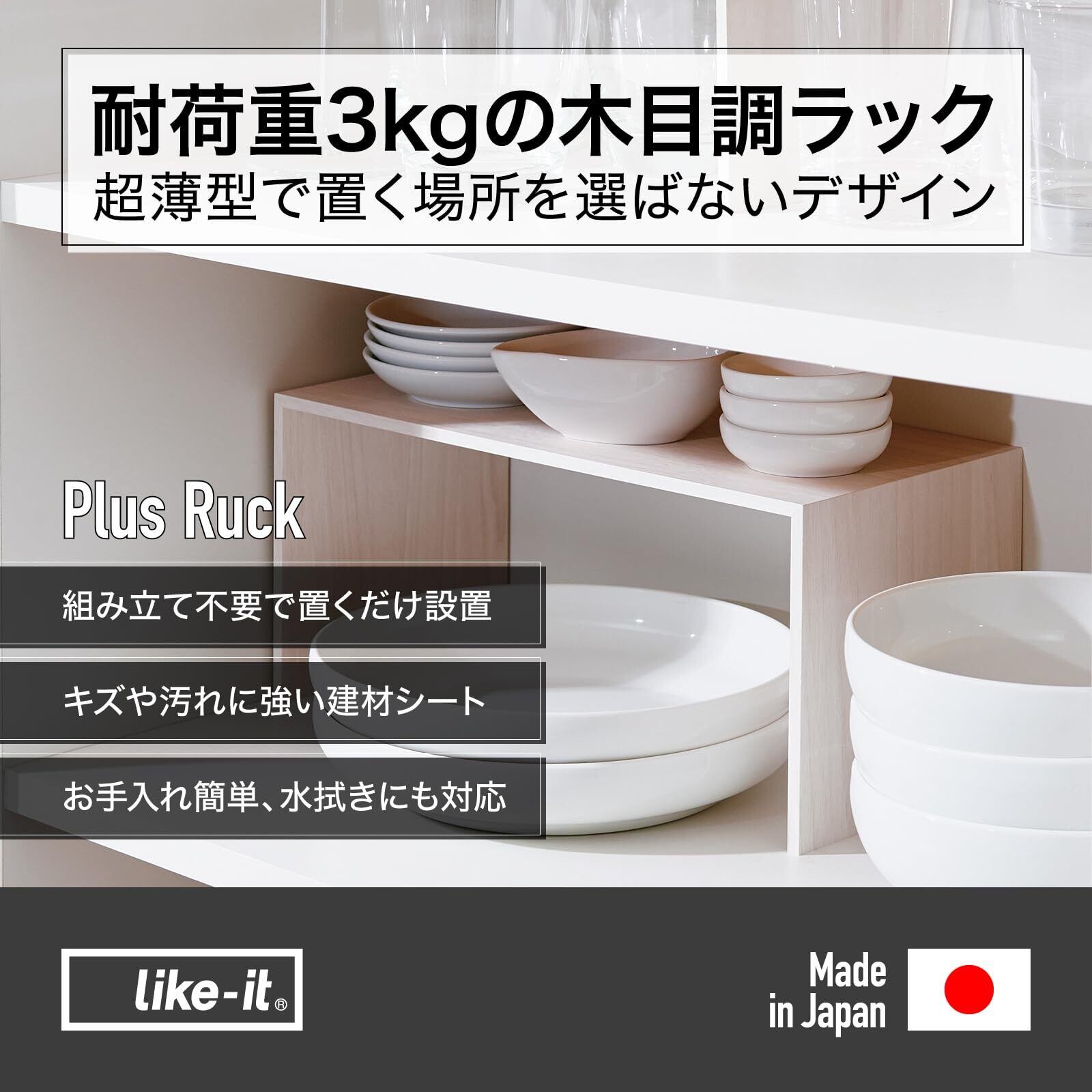 ライクイット (like-it) キッチン 収納 コの字ラック プラスラック スリム 約幅29.5x奥14x高14cm ホワイト 日本製 RA-02 デッドスペース活用 食器棚 棚収納 棚ラック 食器棚収納 キッチン棚