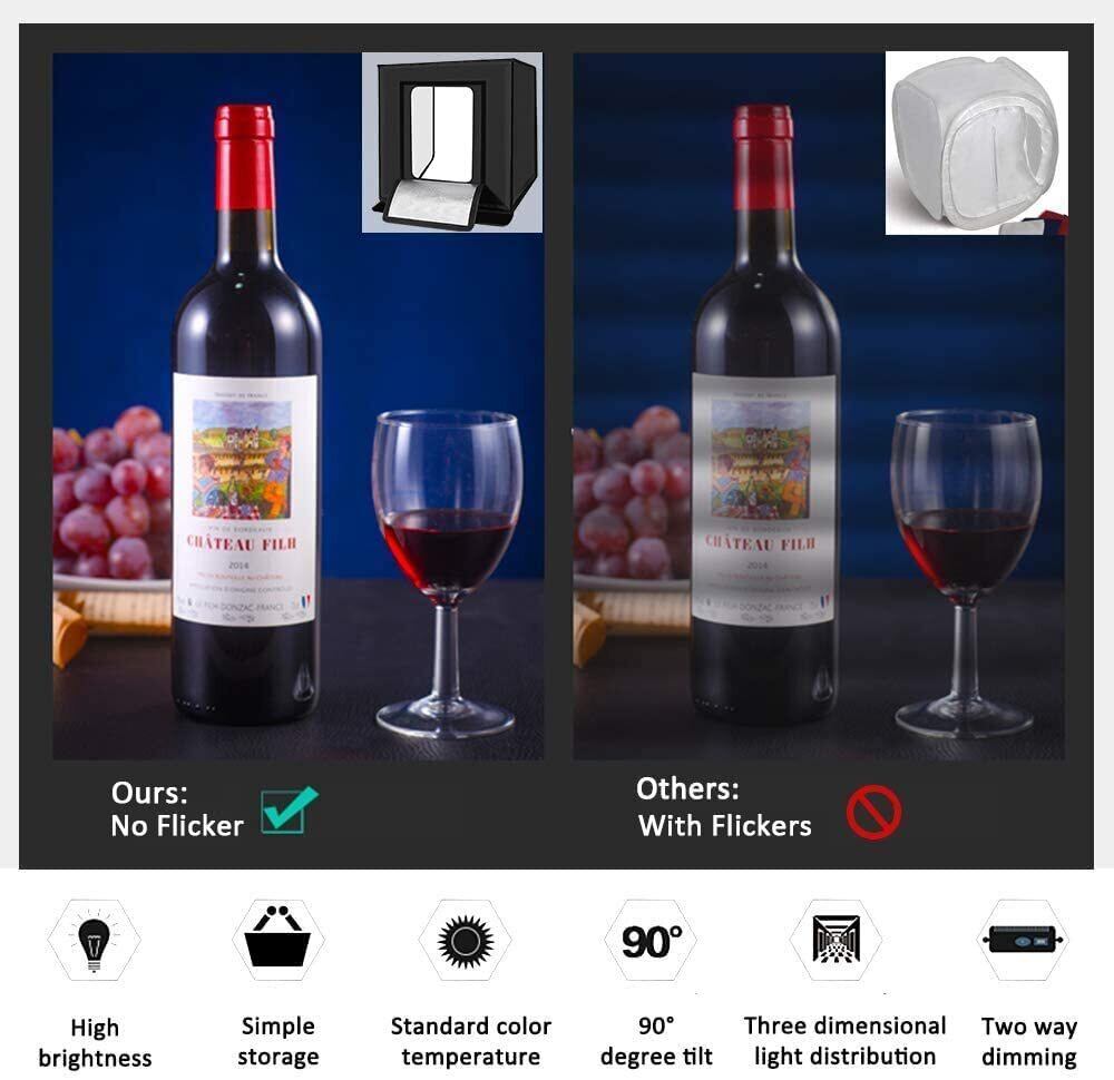 【組み立・使用が簡単】折り畳み式で持ち運び可能、一体構造で、他の工具なしですべての設置が完了できます。また、ライトボックスはプラグデザインで電源に直接接続でき、より速く安定に使用できます。