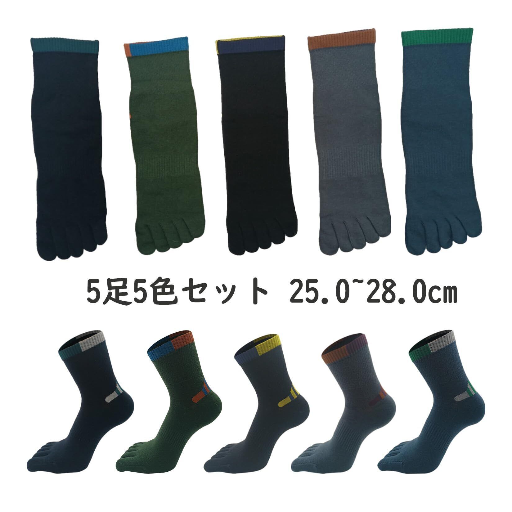 [XKAOPUTE] 五本指 ソックス メンズ 綿 ショートソックス スポーツ ランニング 吸汗 速乾 5本指靴下 フットカバー くるぶし丈 クルー丈 5足5色セット 25~28.0cm