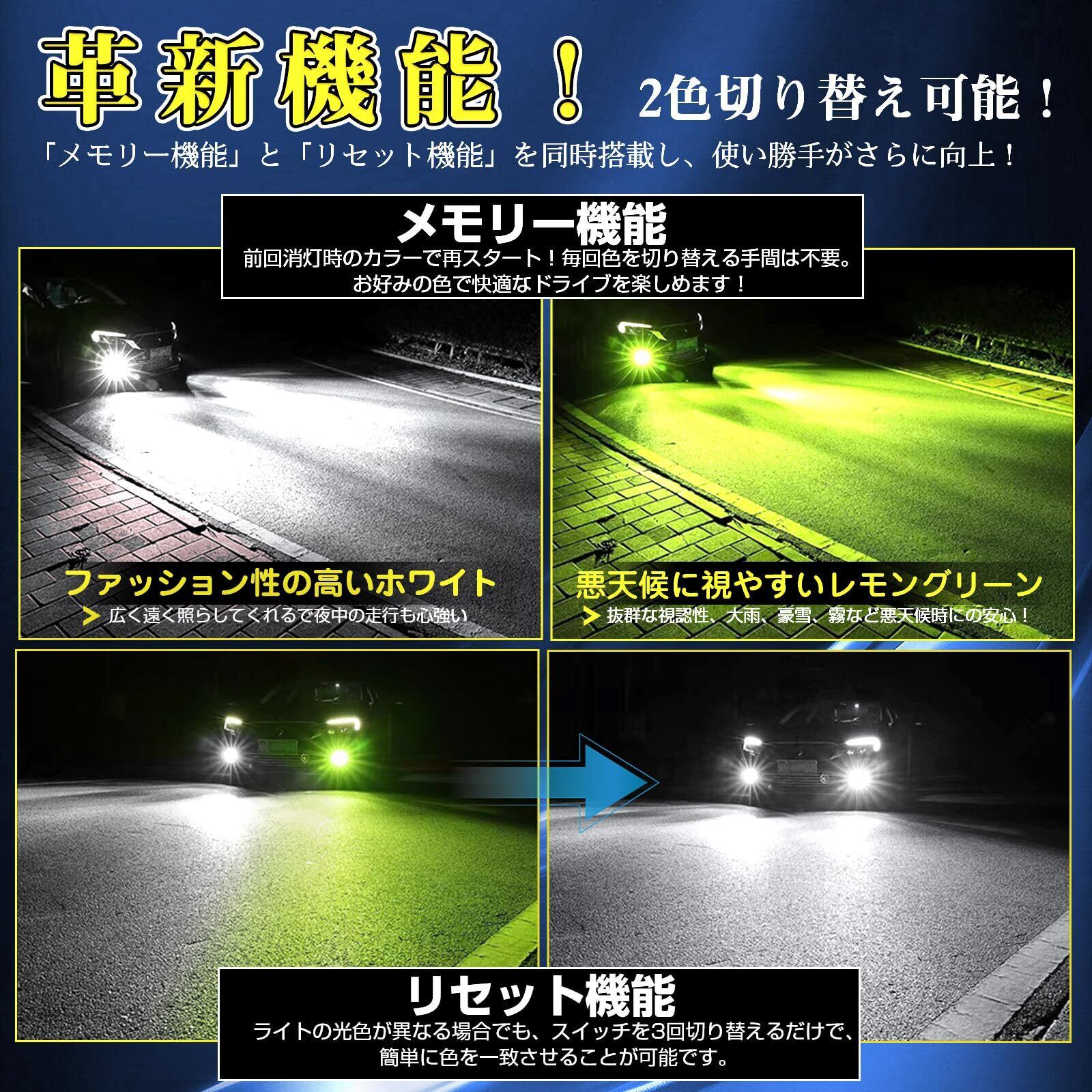 【新着商品】「2色切替 メモリー機能」Perrace H8 LED フォグランプ ホワイト/ライムグリーン 2色切り替え H11 ledフォグライト h16 led フォグ メモリー機能 リセット機能 IP68防水・結露対策 無極性 DC12V 1860CSPチップ キャンセラー内蔵 ラジオノイズ対策 ファンレス 2個セット | nico3588