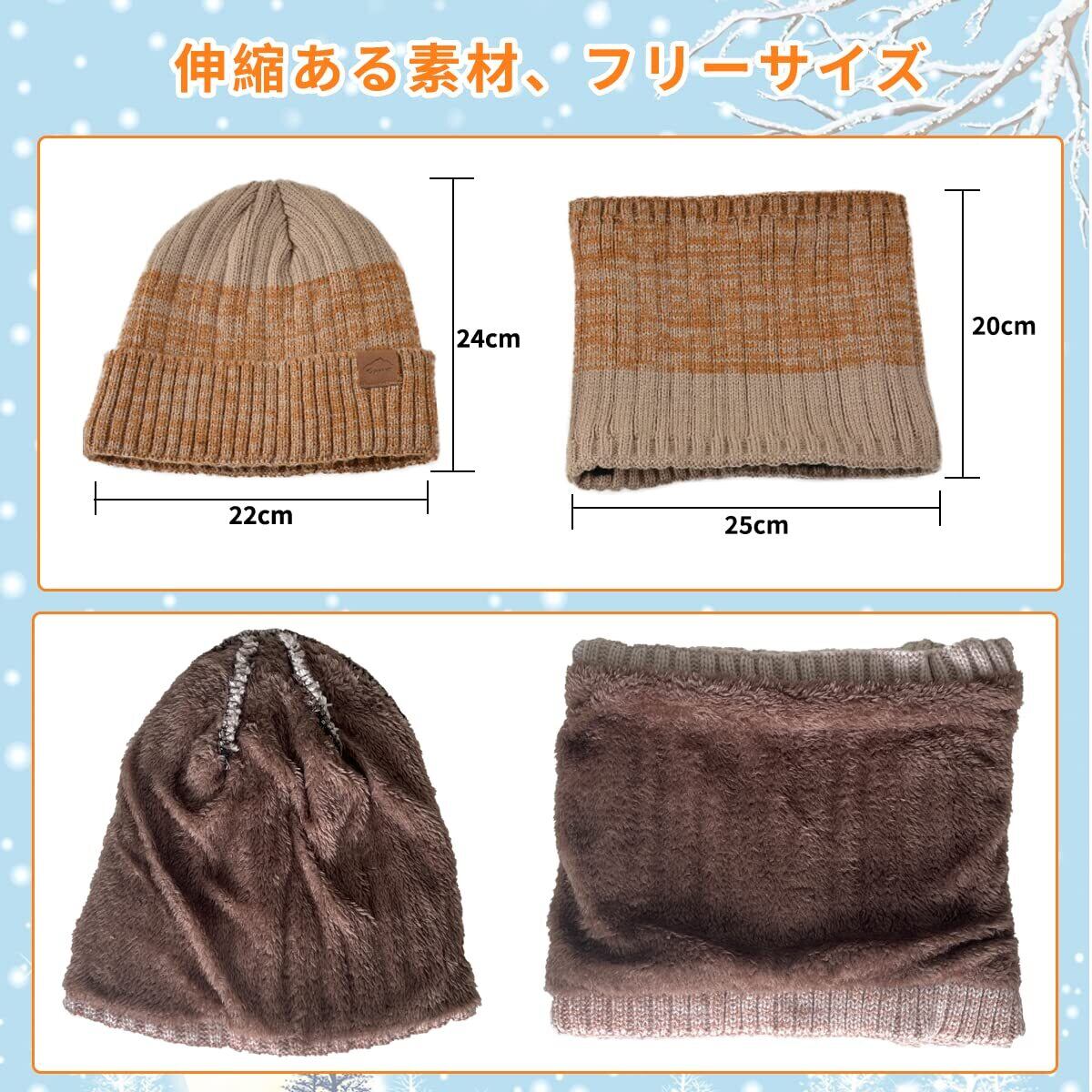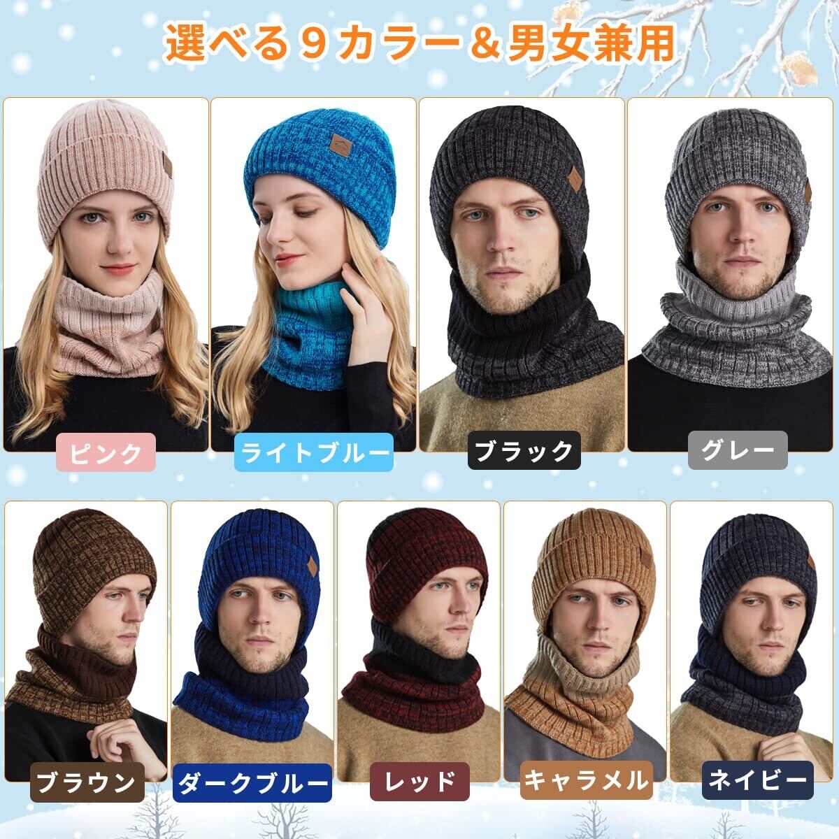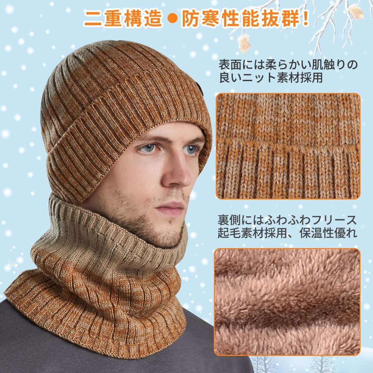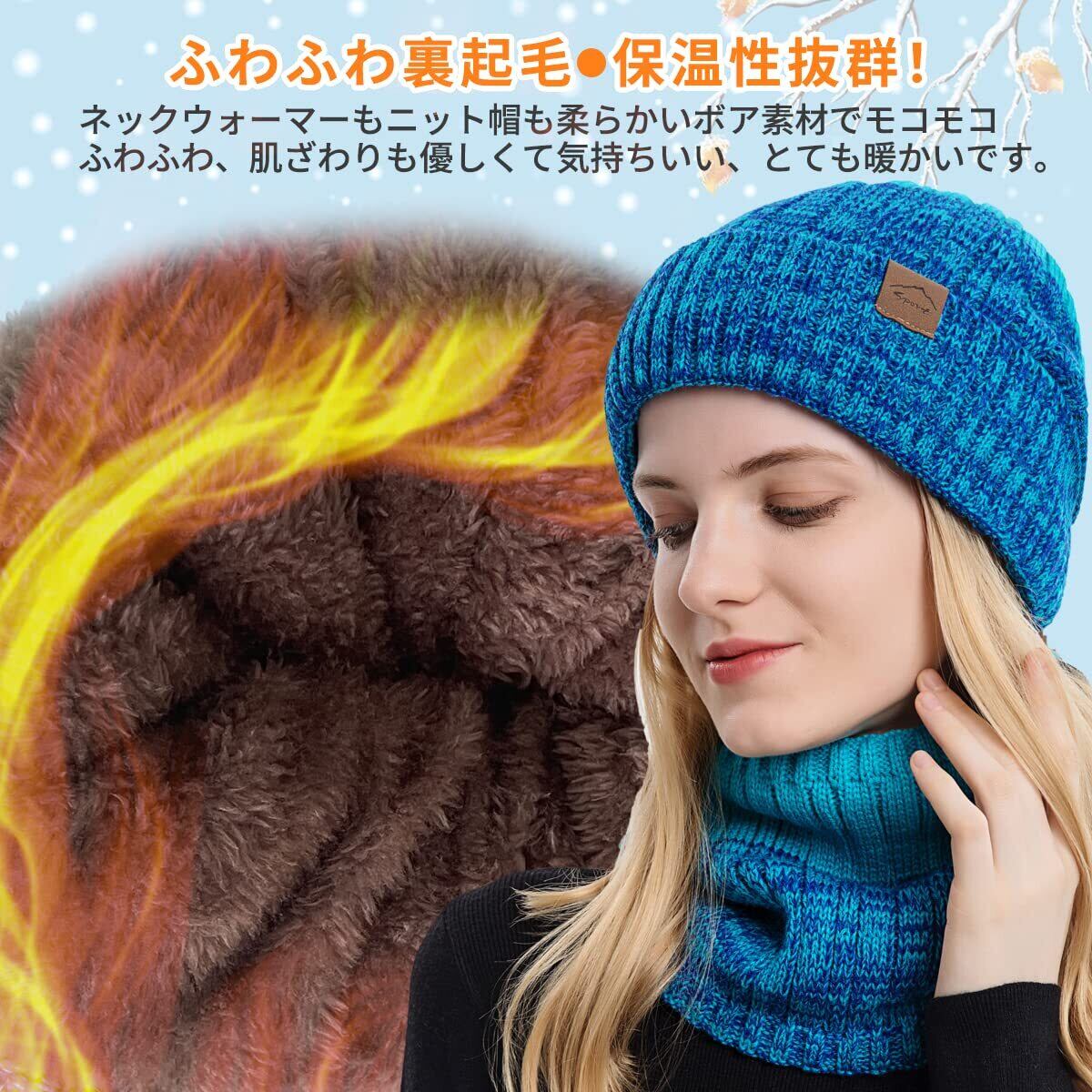CUBATTY ニット帽 ネックウォーマー セット メンズ レディース 冬 防寒 ニット 帽子 暖かい ふわふわ 厚手 裏起毛 柔らかい 防寒保温 おしゃれ ニット帽子 冬 スキー スノボー 自転車 バイク 通勤 通学 キャンプ アウトドア 男女兼用