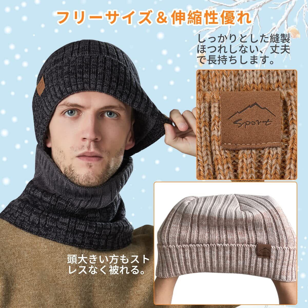 【暖かい&やさしい肌触り】超厚い毛糸編みと裏起毛のデザインは、寒風が入りにくく、真冬でもぴったりです。柔らか裏起毛素材の裏地は心地よい気持ちに!型崩れしなく、綺麗なフォルムを実現できます。頭、耳、首元を冷たい風から守ります。