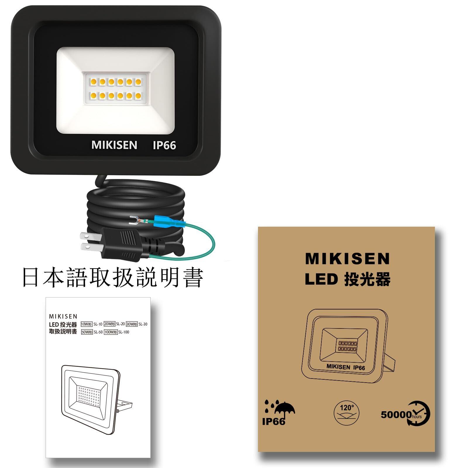MIKISEN led 投光器 作業灯 看板灯 10w 電球色 1200LM 3000K 100w相当 1.8コード IP66防水 アース端子付2Pプラグ 120°広角 100V対応 ワークライト 工事用ライト ledライト 作業灯 外灯 集魚灯 駐車場用 倉庫照明 防犯灯 船舶 屋内 屋外作業 BBQ用 日本語取扱説明書【PSE認証済み 1個セット】