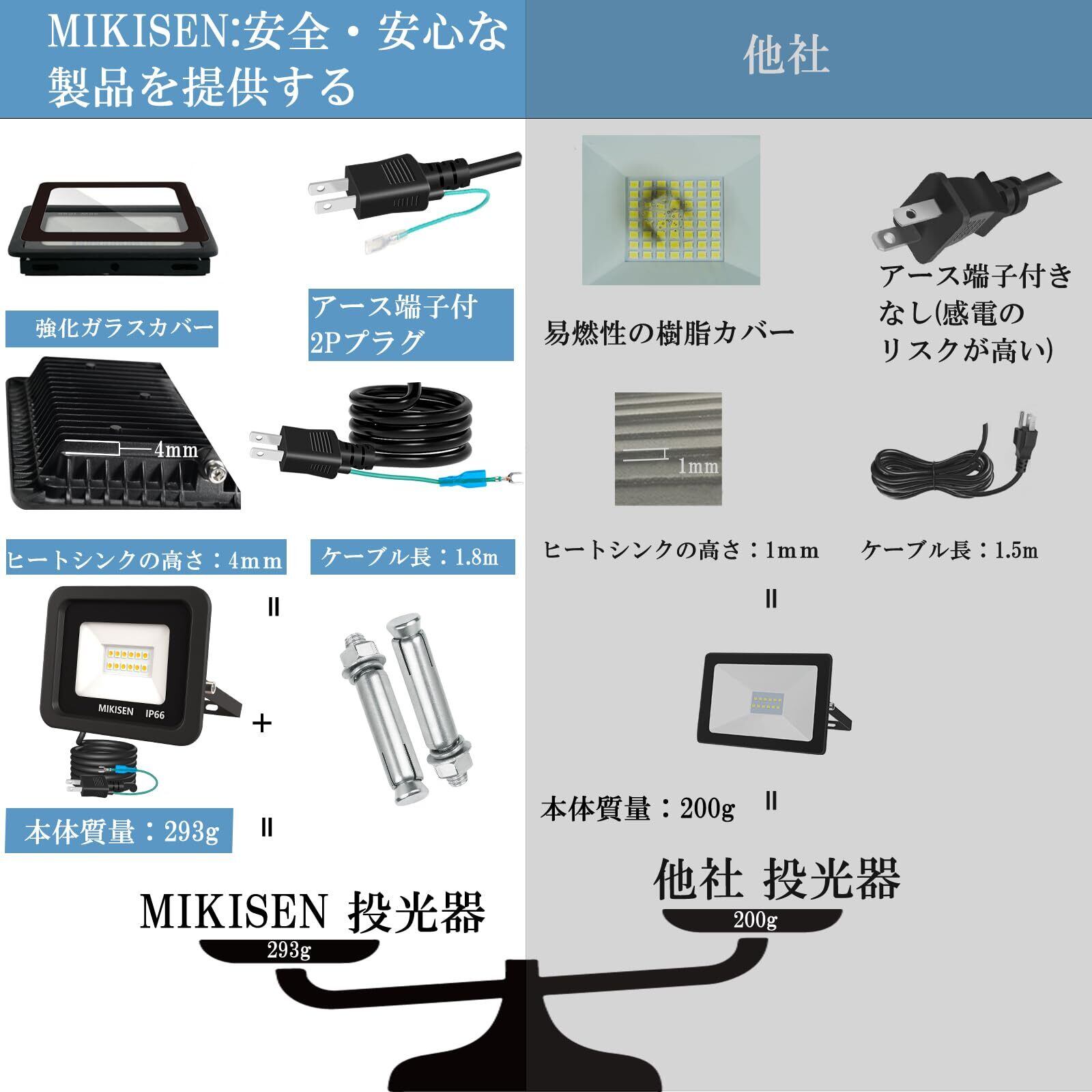 【数量限定】MIKISEN led 投光器 作業灯 看板灯 10w 電球色 1200LM 3000K 100w相当 1.8コード IP66防水 アース端子付2Pプラグ 120°広角 100V対応 ワークライト 工事用ライト ledライト 作業灯 外灯 集魚灯 駐車場用 倉庫照明 防犯灯 船舶 屋内 屋外作業 BBQ用 日本語取扱説明書【PSE認証済み 1個セット】