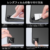 レンズフィルムの保護シールを剥がします、レンズフィルムをレンズに貼ります。レンズの上に軽く置きながら、位置を調整してください。埃が付かないように注意してください。