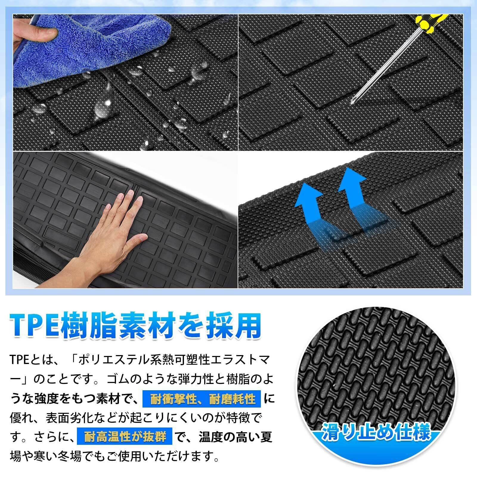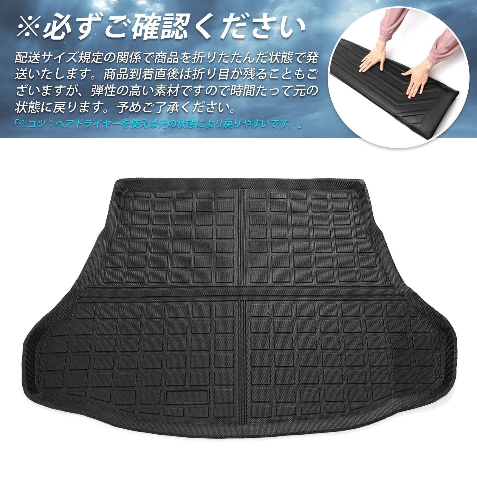 5.【簡単取付】車種専用設計なので、隙間なく装着し、純正品並みのフィット感を手に入れます!取付は純正マットを取り外し、そのままトランクに敷くだけです。女性1人でも簡単に装着できます。「※ご注意:配送サイズ規定の関係で商品を折りたたんだ状態で発送いたします。商品到着直後は折り目残ることもございますが、弾性の高い素材ですので時間たって元の状態に戻ります。予めご了承ください。※コツ:ヘアドライヤーを使えばより元の状態に戻りやすいです。※」