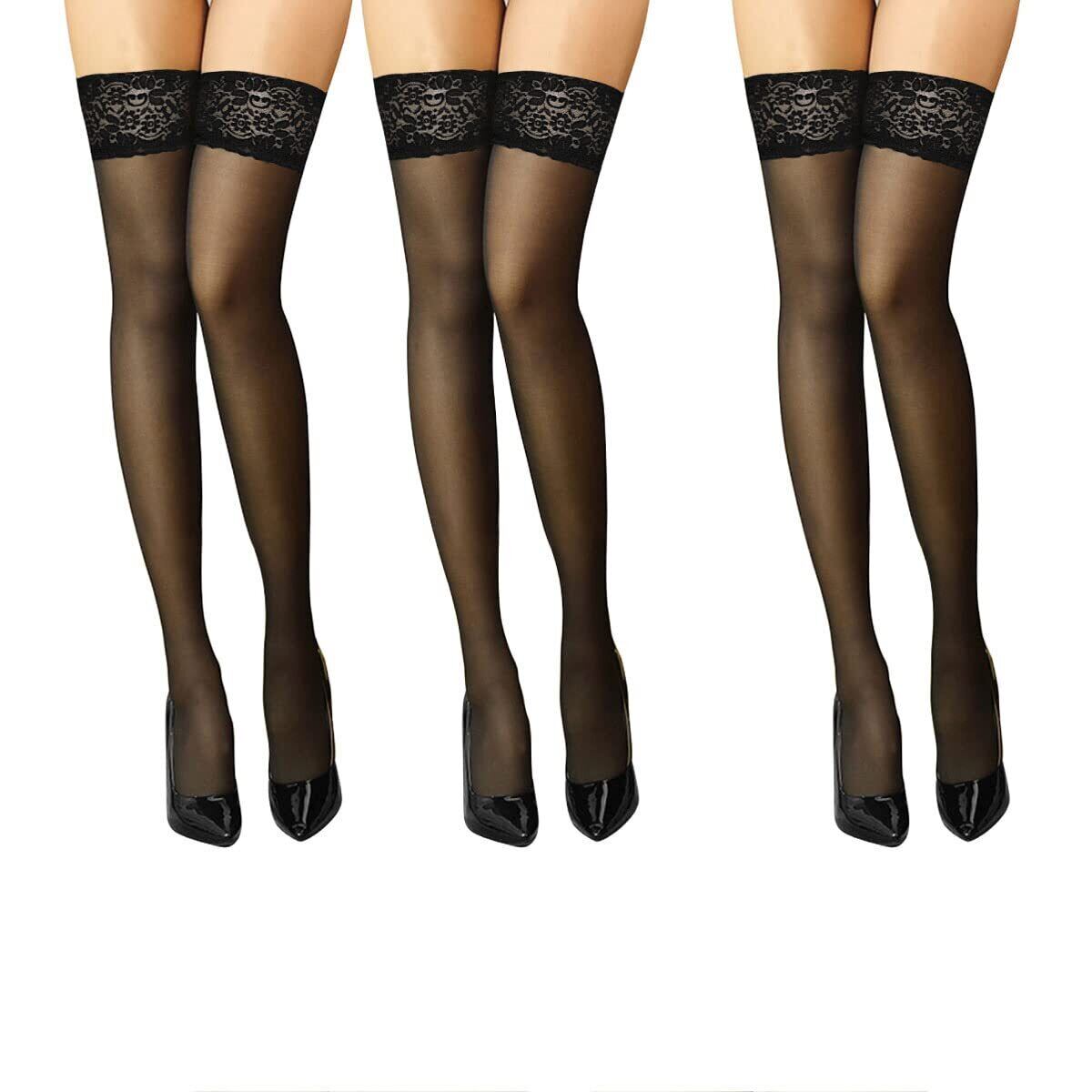 【人気商品】[Nissot] シリコンストッパー付き ガーターストッキング 黒 ブラック セクシー 花柄レース ストッキング 滑り止め タイツ シリコン樹脂付き ロゴパッケージ入