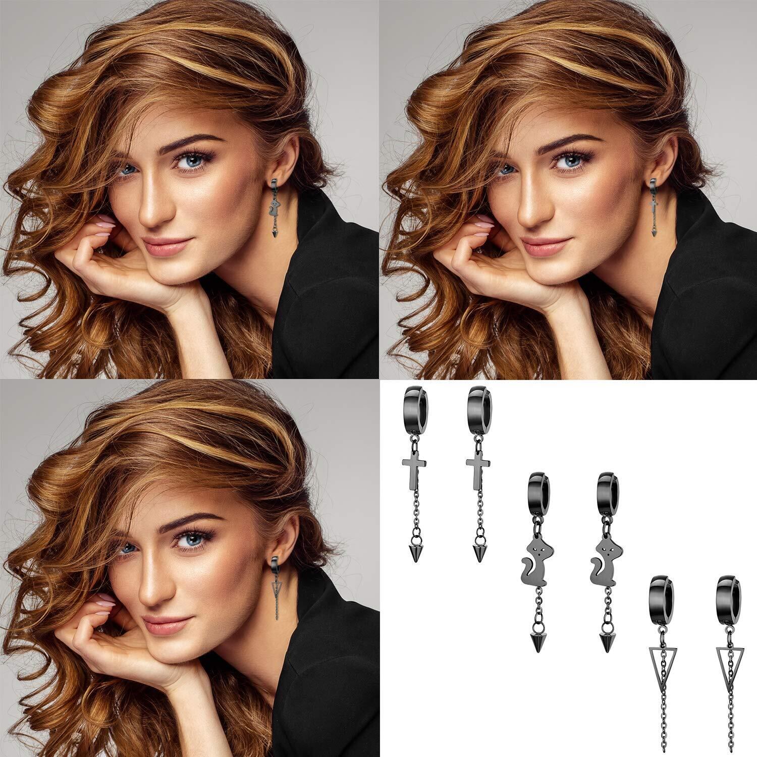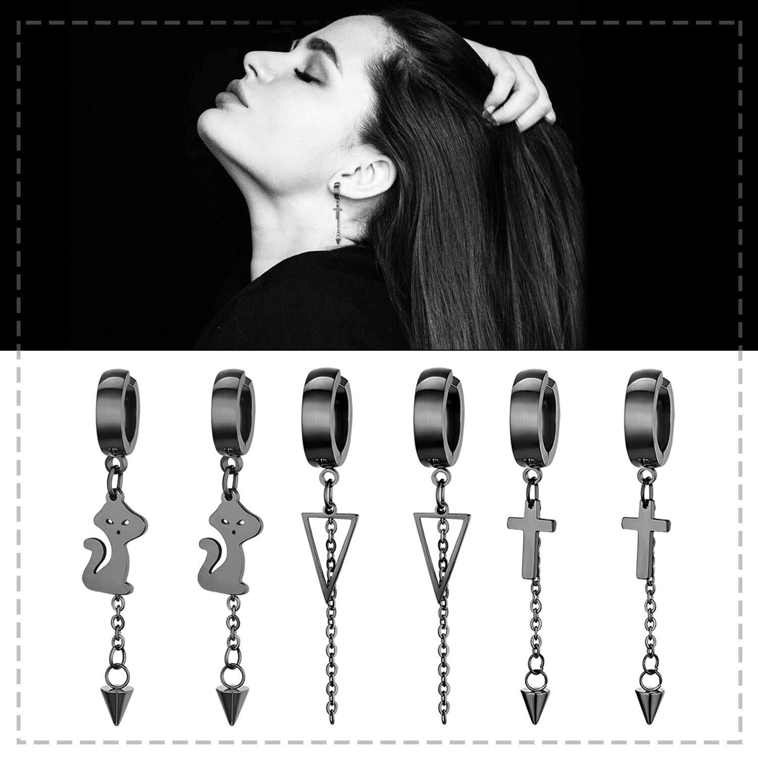 Aroncent ノンホール ピアス イヤリング イヤーカフ フェイクピアス 3ペア6点セット ステンレス ピアスリング おしゃれ フープピアス ロングチェーン 片耳 両耳 穴不要 ファッション アクセサリー ゴールド シルバー ブラック