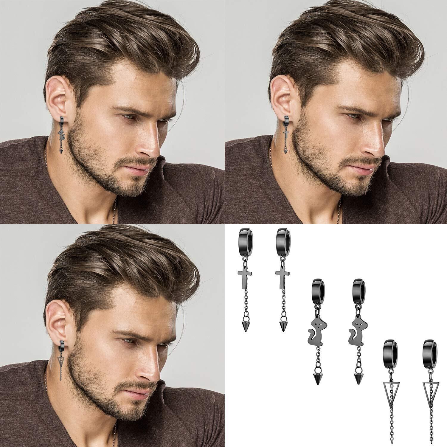 【新春セール】Aroncent ノンホール ピアス イヤリング イヤーカフ フェイクピアス 3ペア6点セット ステンレス ピアスリング おしゃれ フープピアス ロングチェーン 片耳 両耳 穴不要 ファッション アクセサリー ゴールド シルバー ブラック