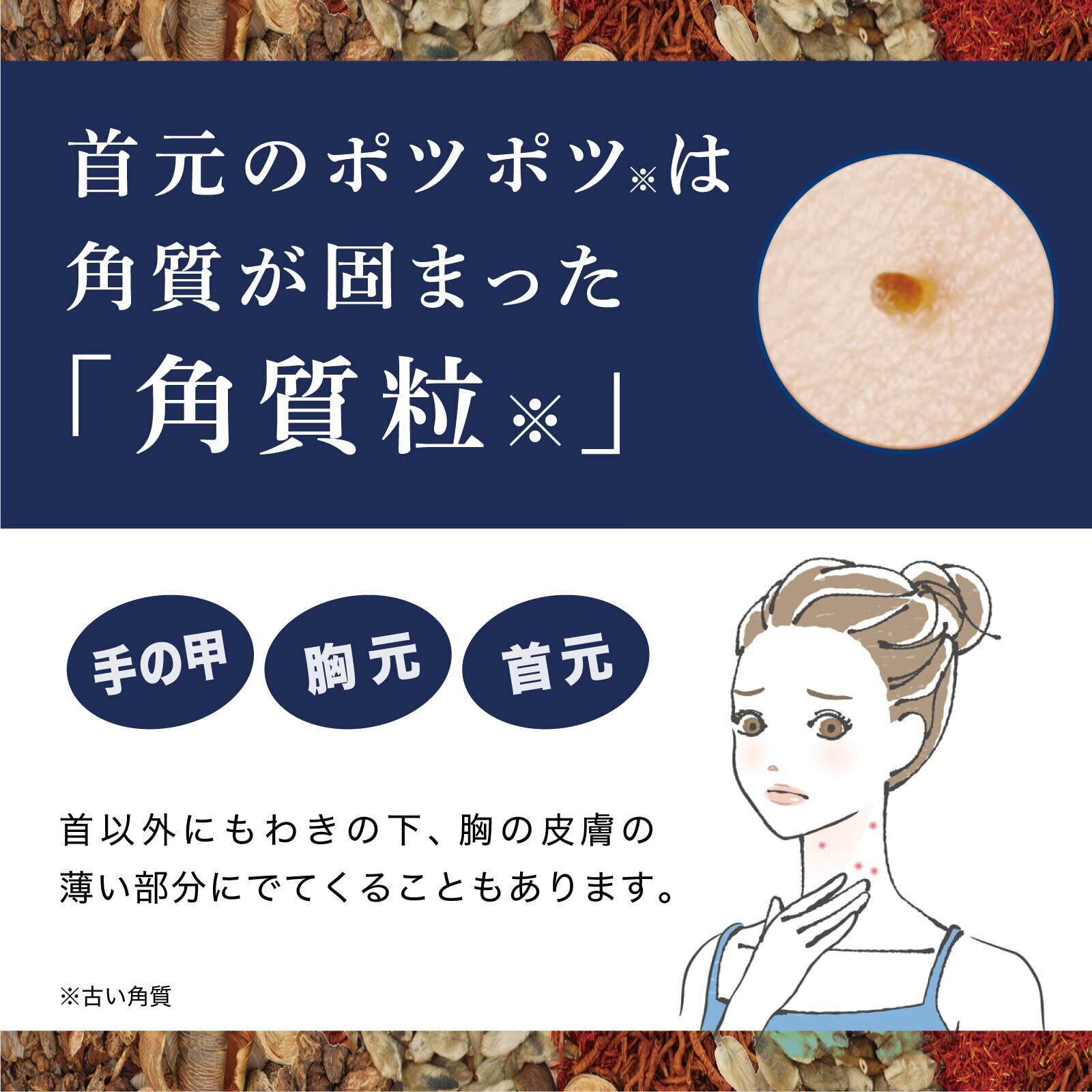 ヨクイニンエキス配合のトロっととした液体が首元の角質粒にアプローチ。表面だけが乾いて角質粒を包みます。 寝ている時にできる簡単「ながら」ケア