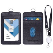 Wisdompro パスケース 定期入れ リール付き 縦型 両面 ID/ICカードケース 社員証ケース ネームカードホルダー PUレザー 通勤 通学 メンズ レディース ブラック