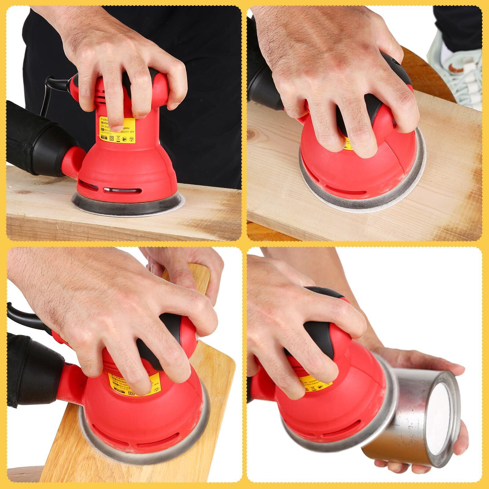 【内容物】-パッケージ内容: 電動ランダムサンダー 、サンドペーパー(80および180グリット)12枚、日本語取扱説明書1冊。届いたらすぐに使えるのでとても便利です。