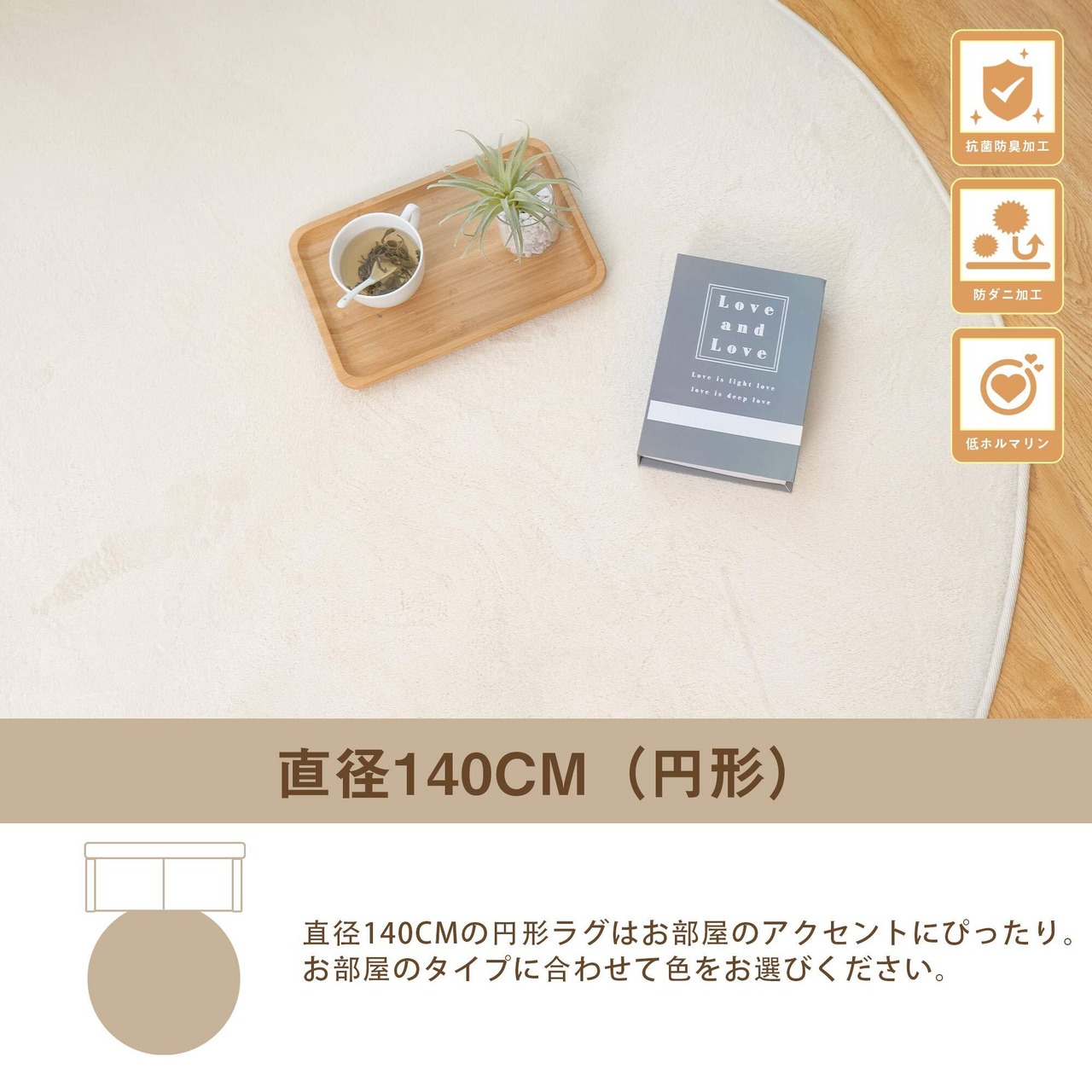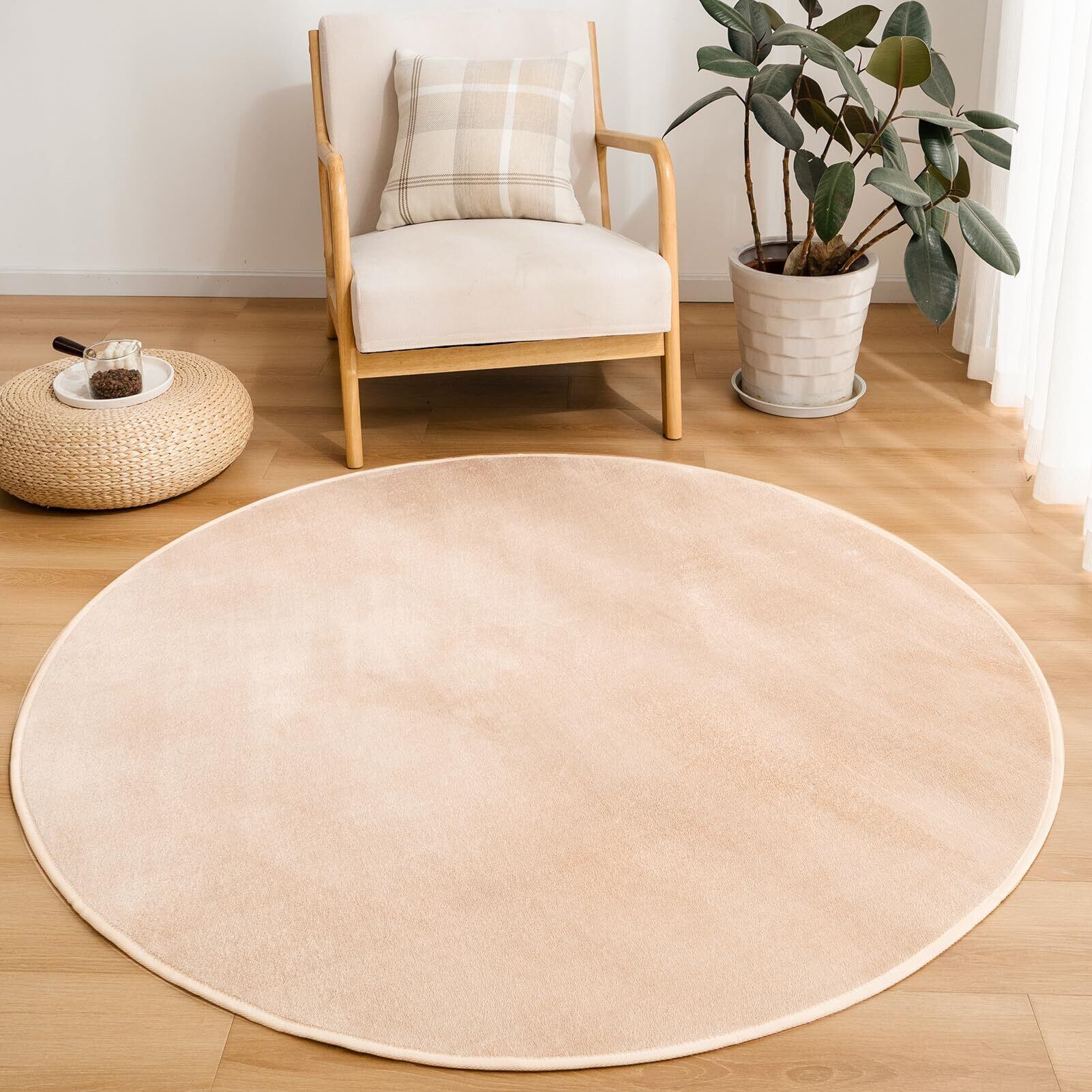 【新着商品】VK Living ラグ 円形 カーペット ラグマット 直径140cm 洗える 滑り止め付 防ダニ 抗菌防臭 1年中快適に使えるタイプ 掃除しやすい フランネル 絨毯 床暖房 ホットカーペット対応 可愛い 丸 お手入れ簡単 ライトモカ VKJ142-140R-MO