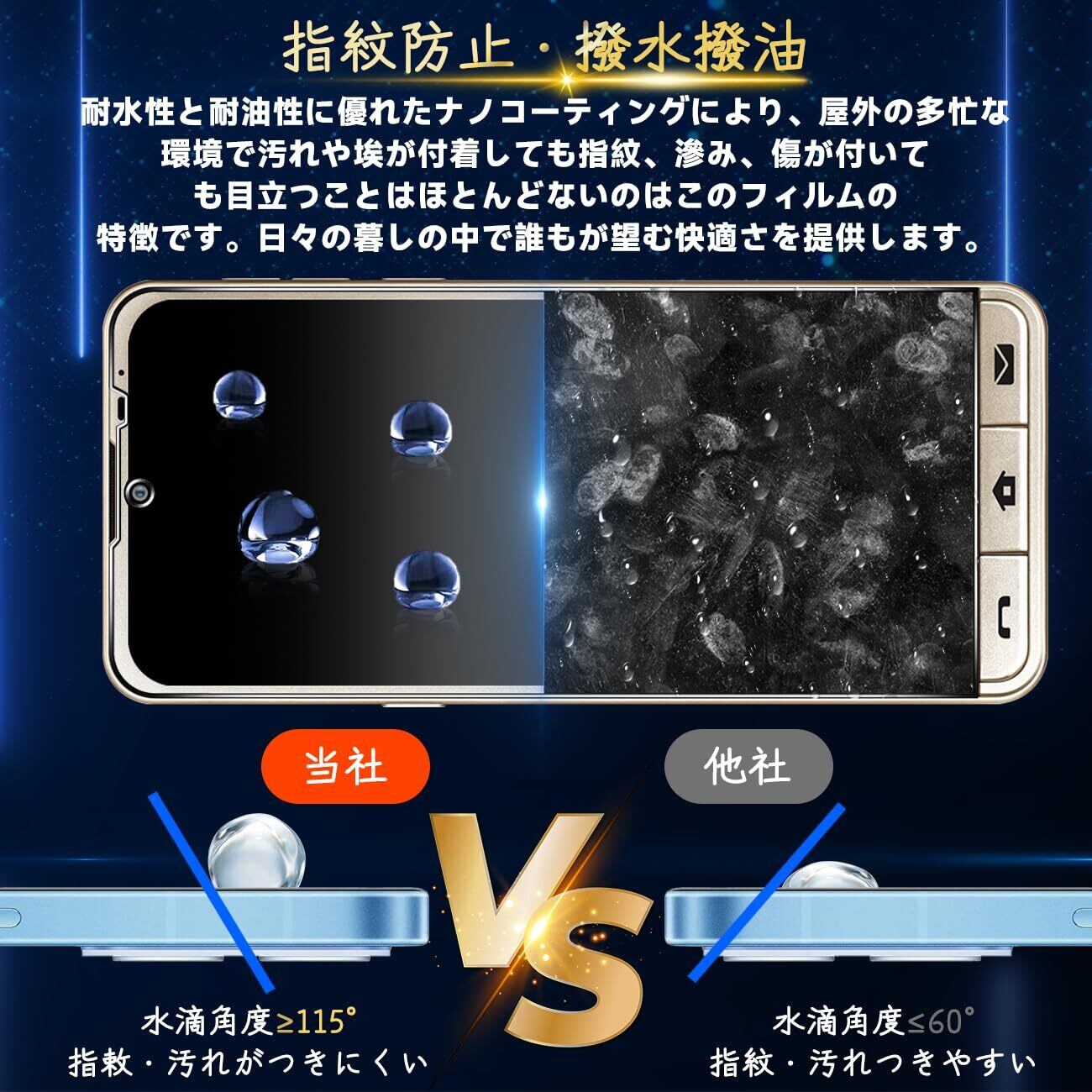 【汚れ防止&指紋防止 / 防水 / 耐油性】保護フィルム は、石材ナノコーティング層の最新の指紋防止技術を使用していますので、通常フィルム のようなラフなタッチは一切ありません。画面がさらさらで指紋が付きにくい、高感度で快適な操作を実現、汗防止、スムーズにゲームプレイ体験、長時間の楽しみなどの利点もあります。*万が一付着した指紋、水滴、汗、化粧品などは簡単に拭き取れます。市場に出回っている99%の携帯電話ケースと互換します;強化ガラスのサイズは携帯ケースを取り付けるためのスペースをよいし、両側が浮き上がらないように保証します。何百もの携帯電話ケースがテストした後、適応率は 99% と高くなり、フィルム対応できる携帯ケースの心配がありません。