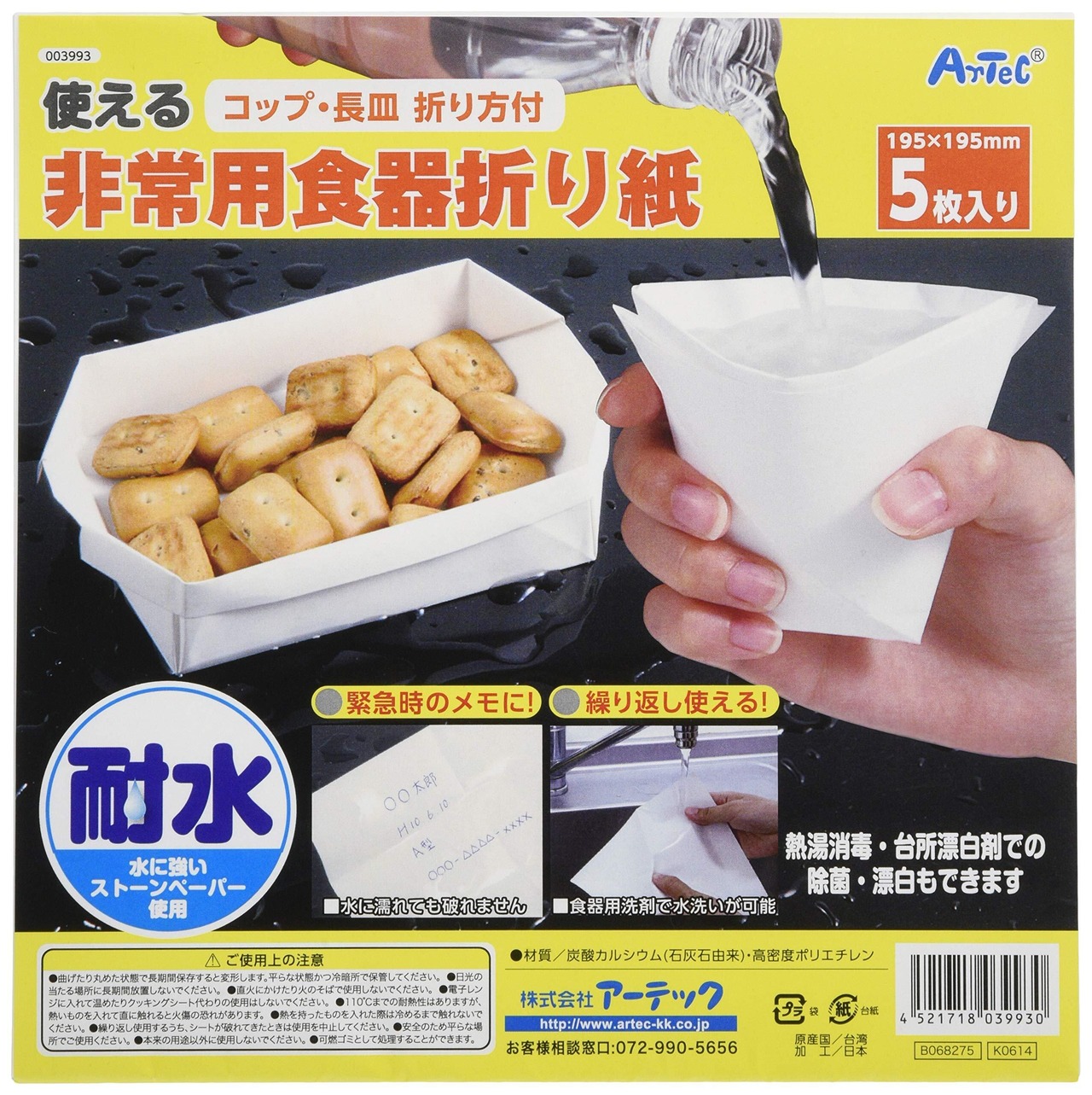 アーテック(artec) 非常用 食器が作れる 繰り返し洗える 折り紙 5枚入り 3993
