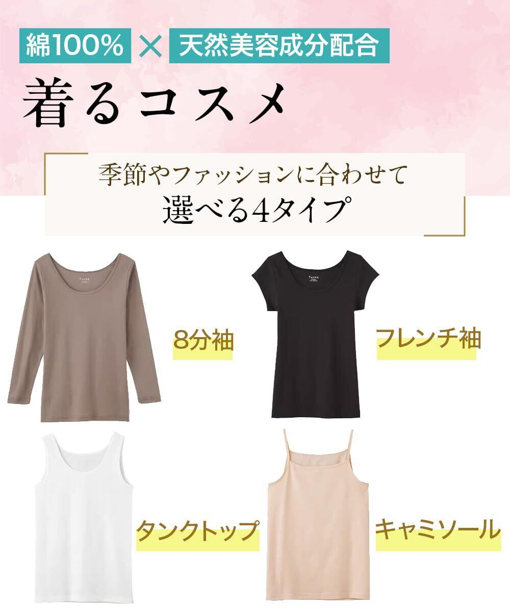 【Tuche(トゥシェ)】綿100%コットンインナー。天然美容成分を配合した「着るコスメ」インナーです。