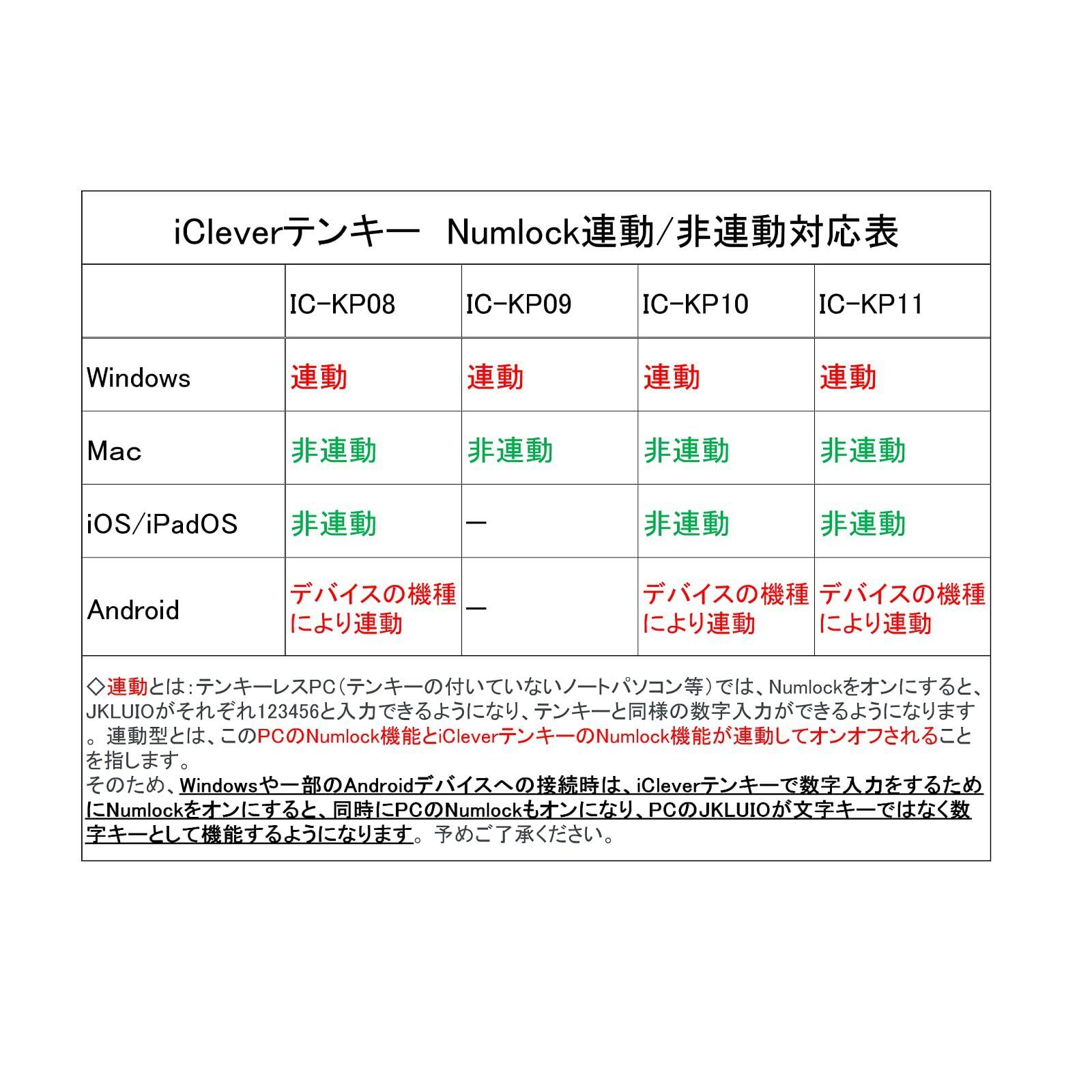 iClever テンキー ワイヤレス 2.4G 数字 キーボード パンタグラフ式 Type-C充電 超薄型 Tabキー付き 持ち運び便利 無線 ナンバーパッド 片手デバイス 高耐久 PC ノートブック用 Windows対応 IC-KP09 (ブラック)