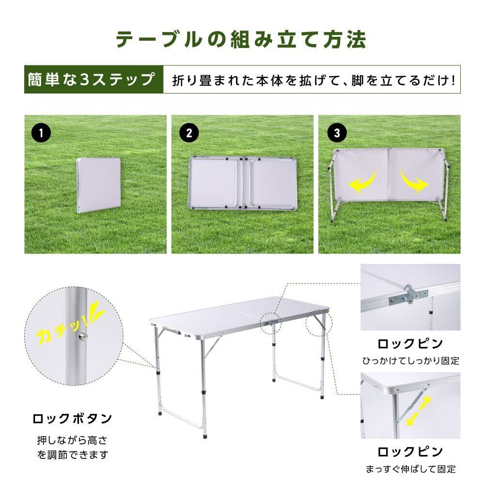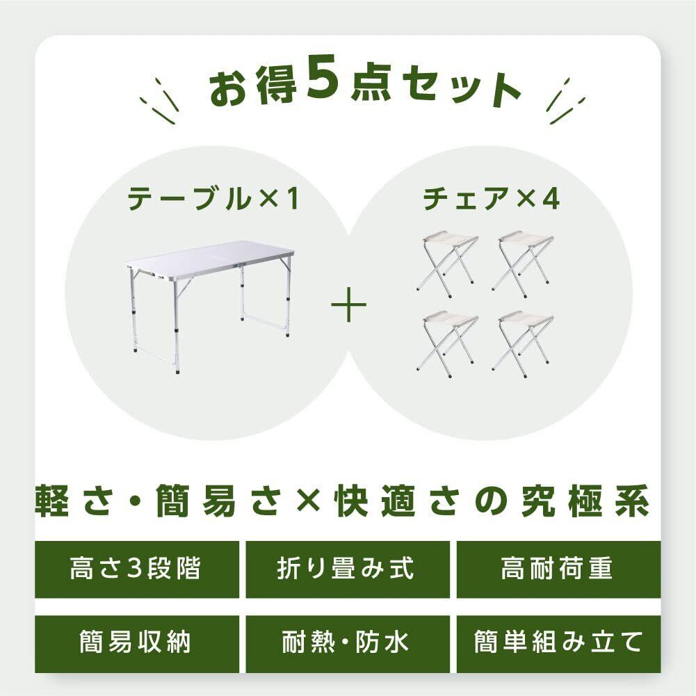 【サインキングダム】アウトドア テーブルセット 4人 高さ3段階調整可能 テーブル チェア チェアセット レジャーテーブル ピクニックテーブル キャンプ テーブル コンパクト 耐熱 キャンプ BBQ 運動会 防災 South Light sl-tz1205-wh